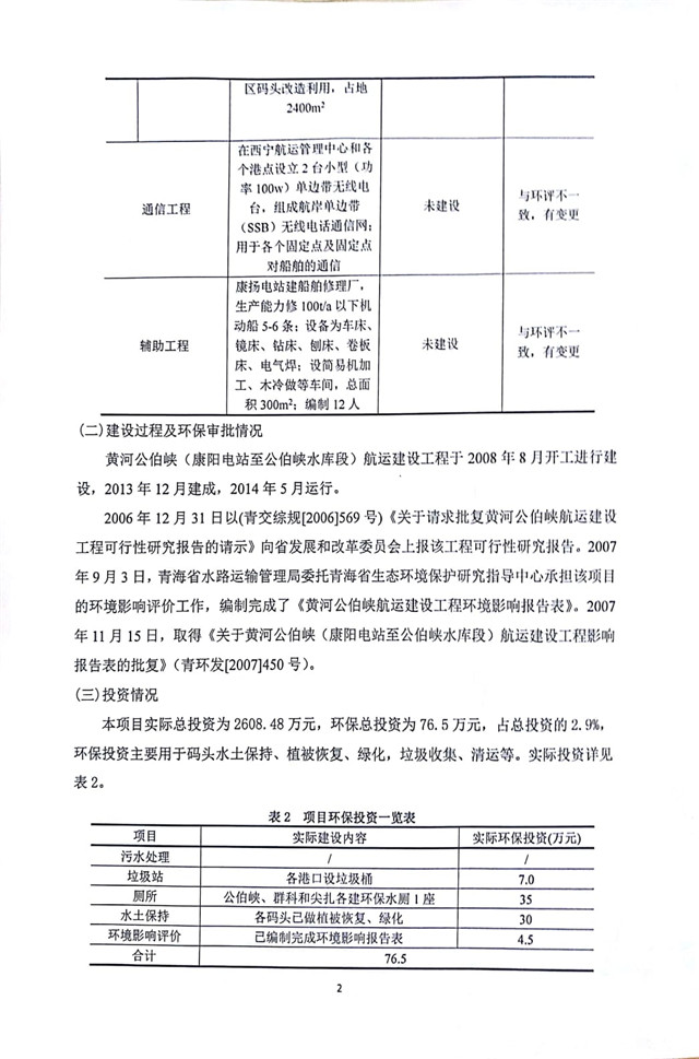 黃河公伯峽(康楊電站至公伯峽水庫(kù)段)航運(yùn)建設(shè)工程竣工環(huán)境保護(hù)驗(yàn)收調(diào)查報(bào)告表公示發(fā)布日期:(2018-11-16) 點(diǎn)擊次數(shù):2441 |