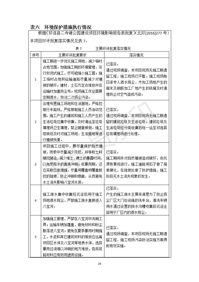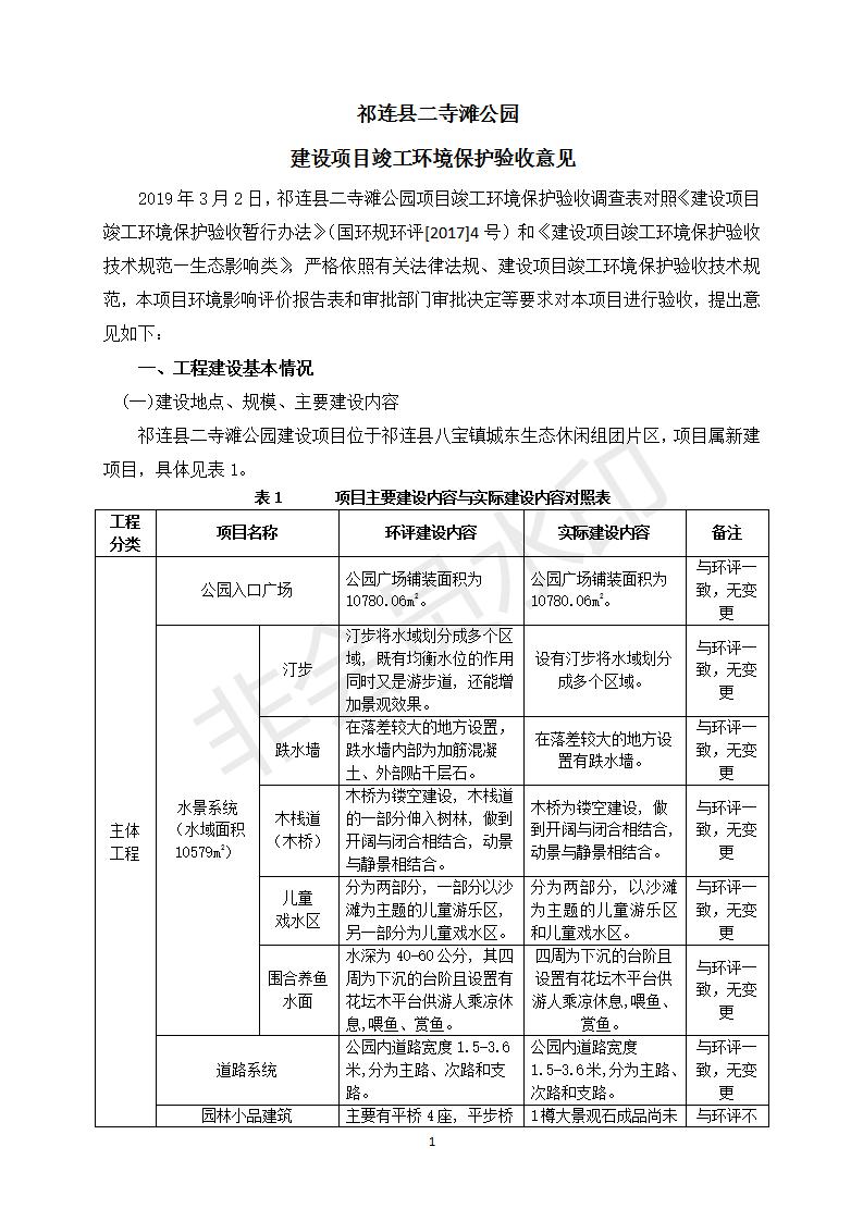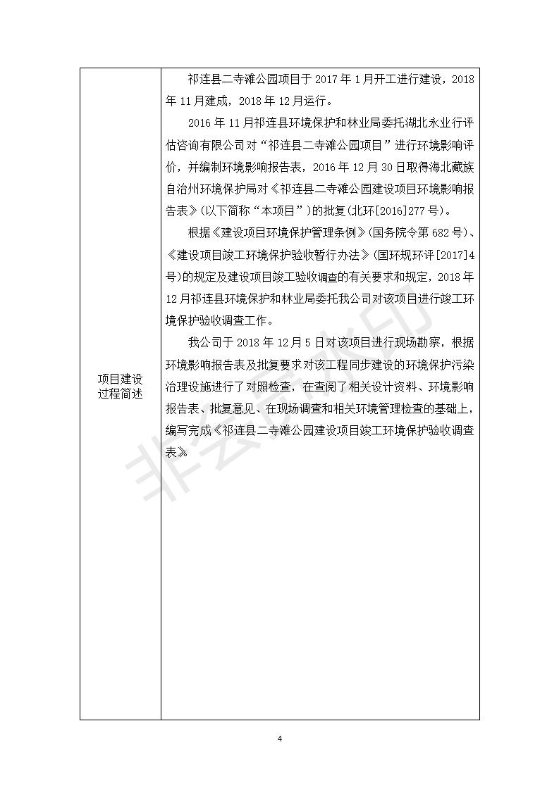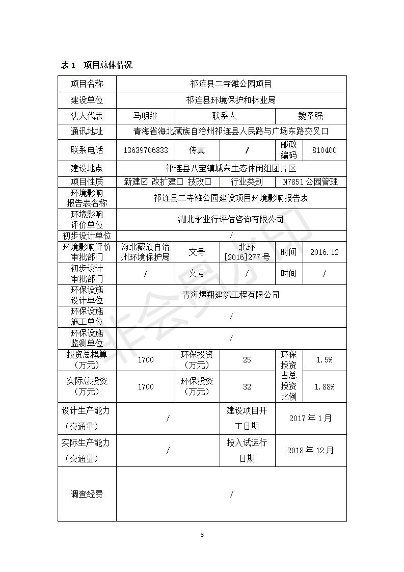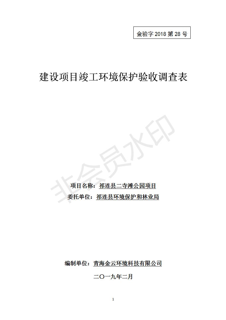 祁連縣二寺灘公園項目竣工環(huán)境保護驗收調查表公示