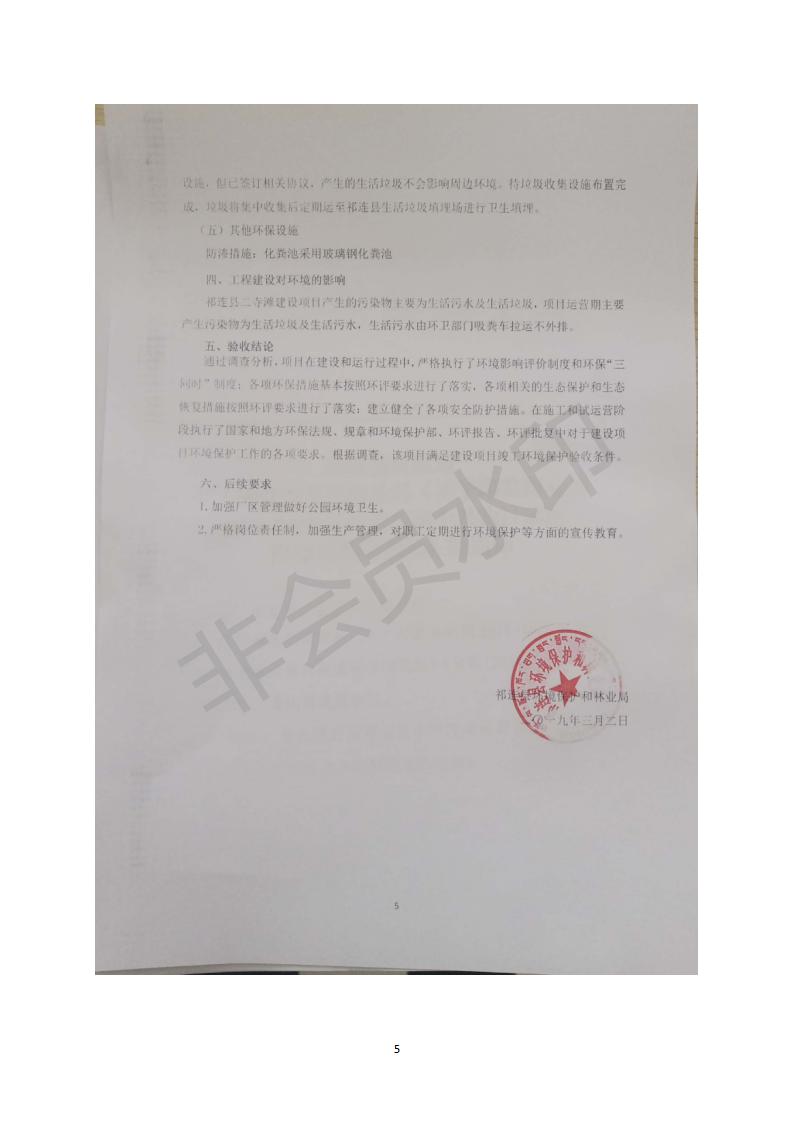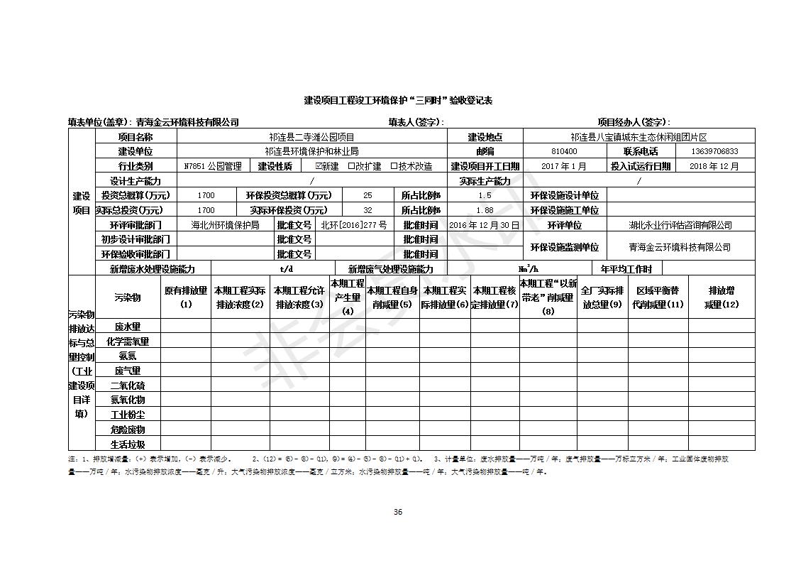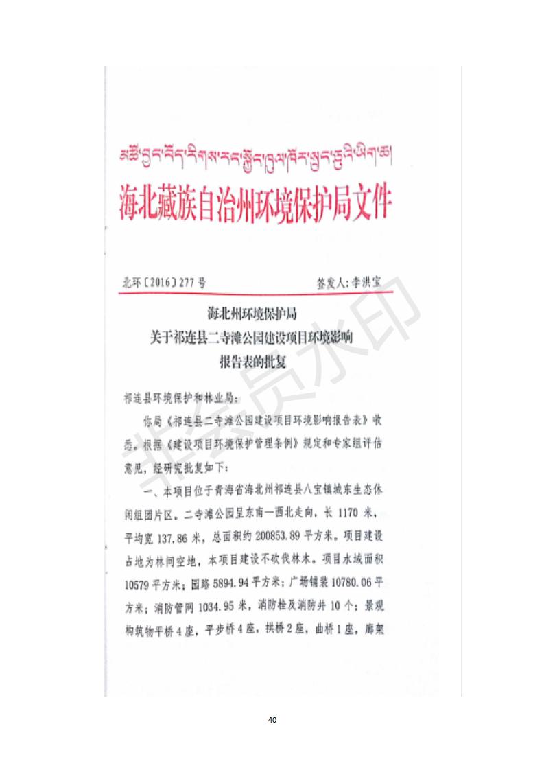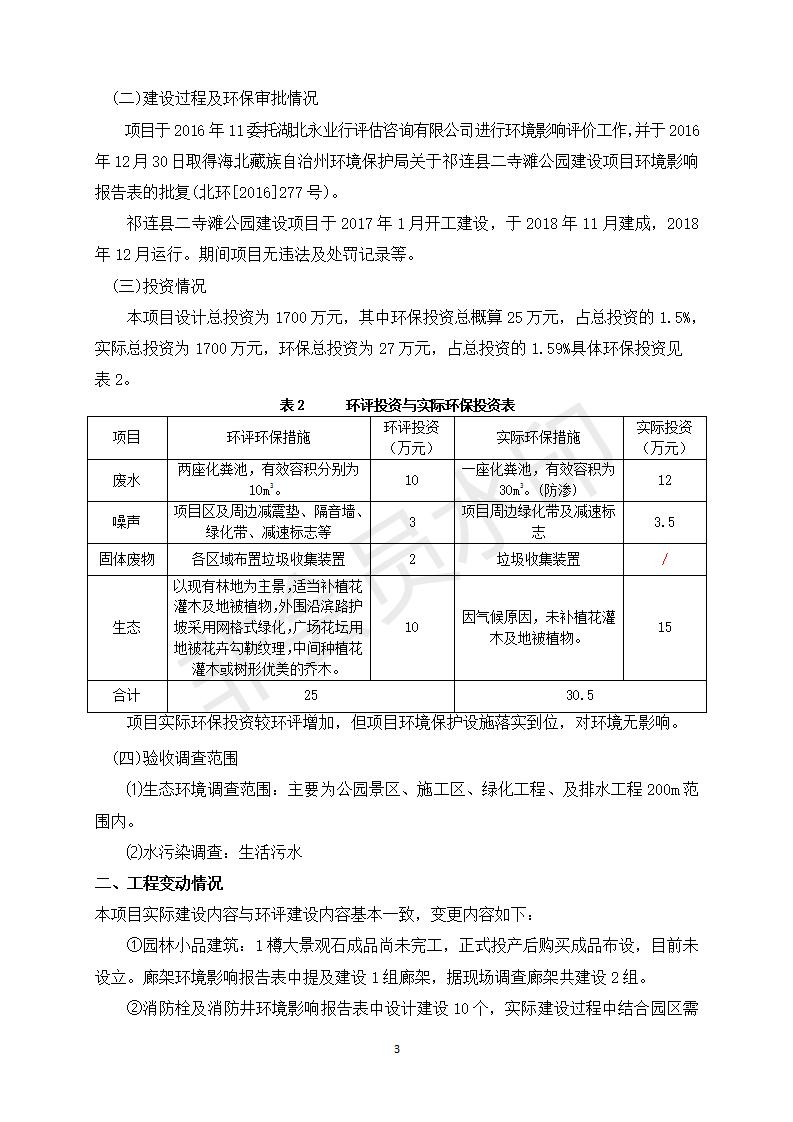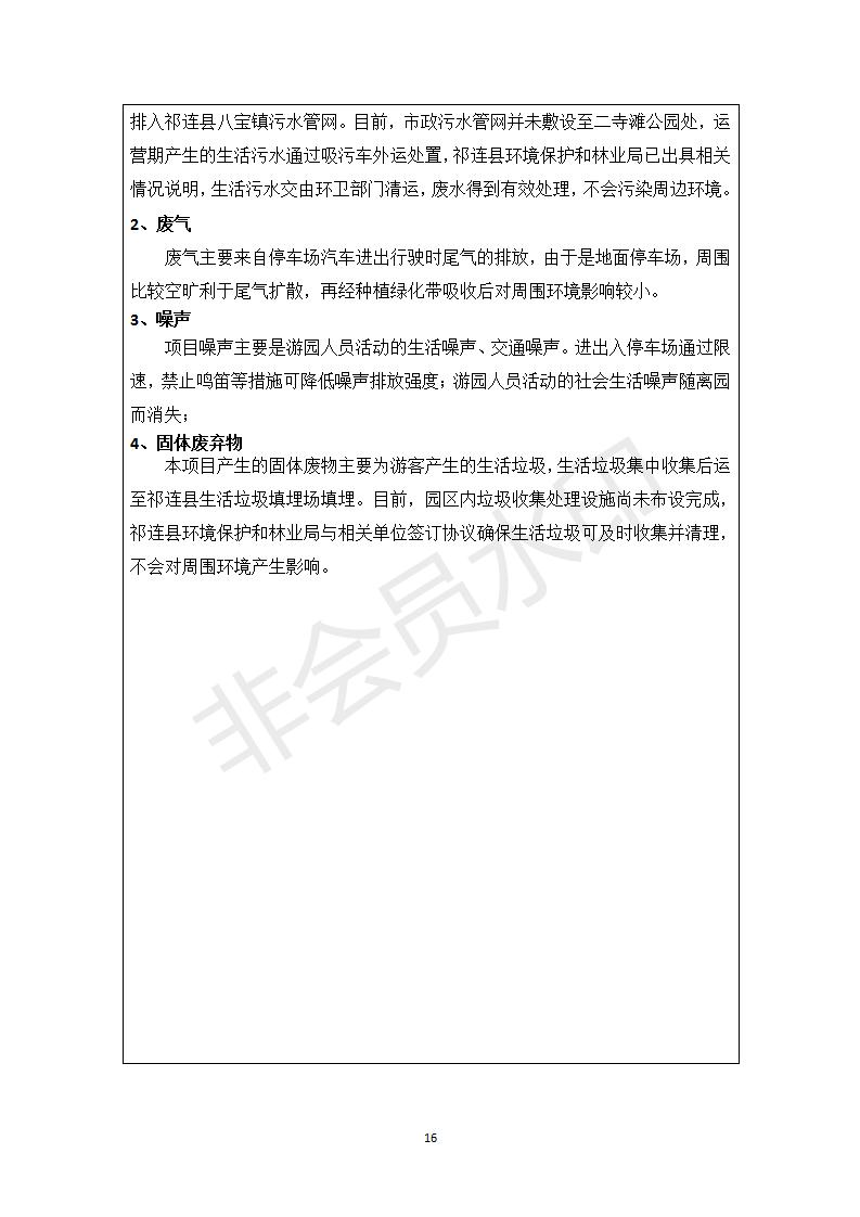 祁連縣二寺灘公園項目竣工環(huán)境保護驗收調查表公示