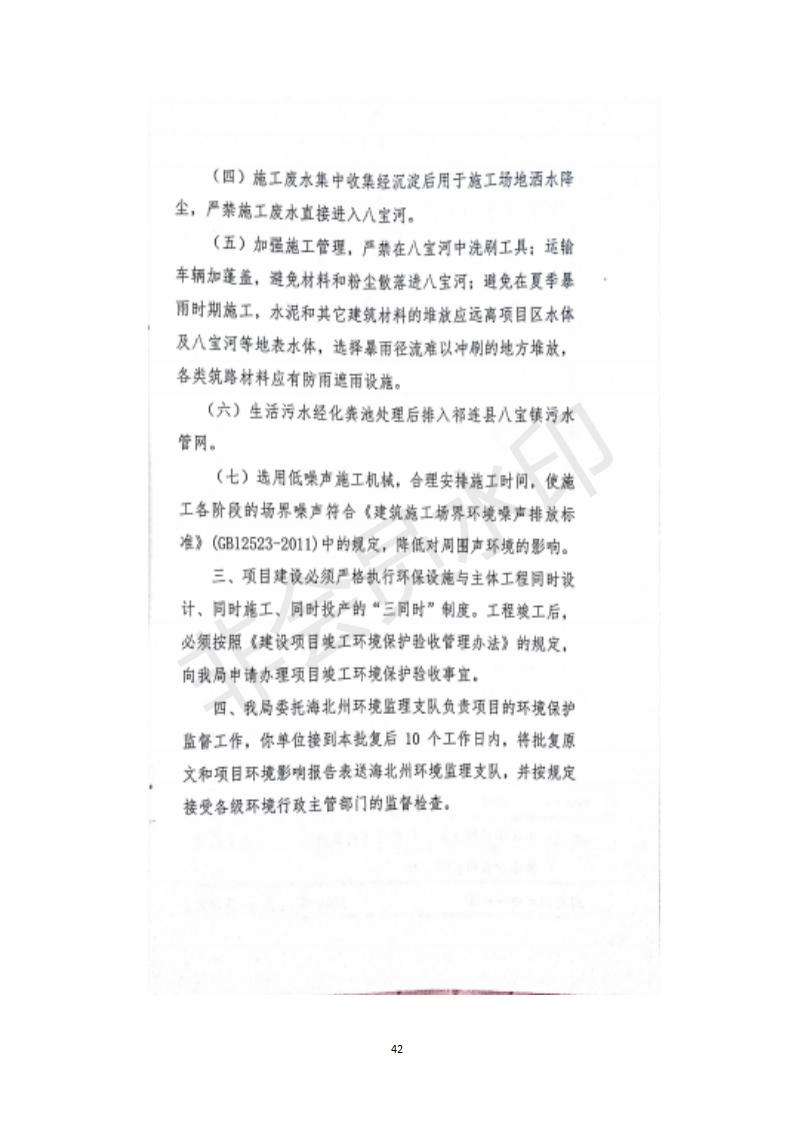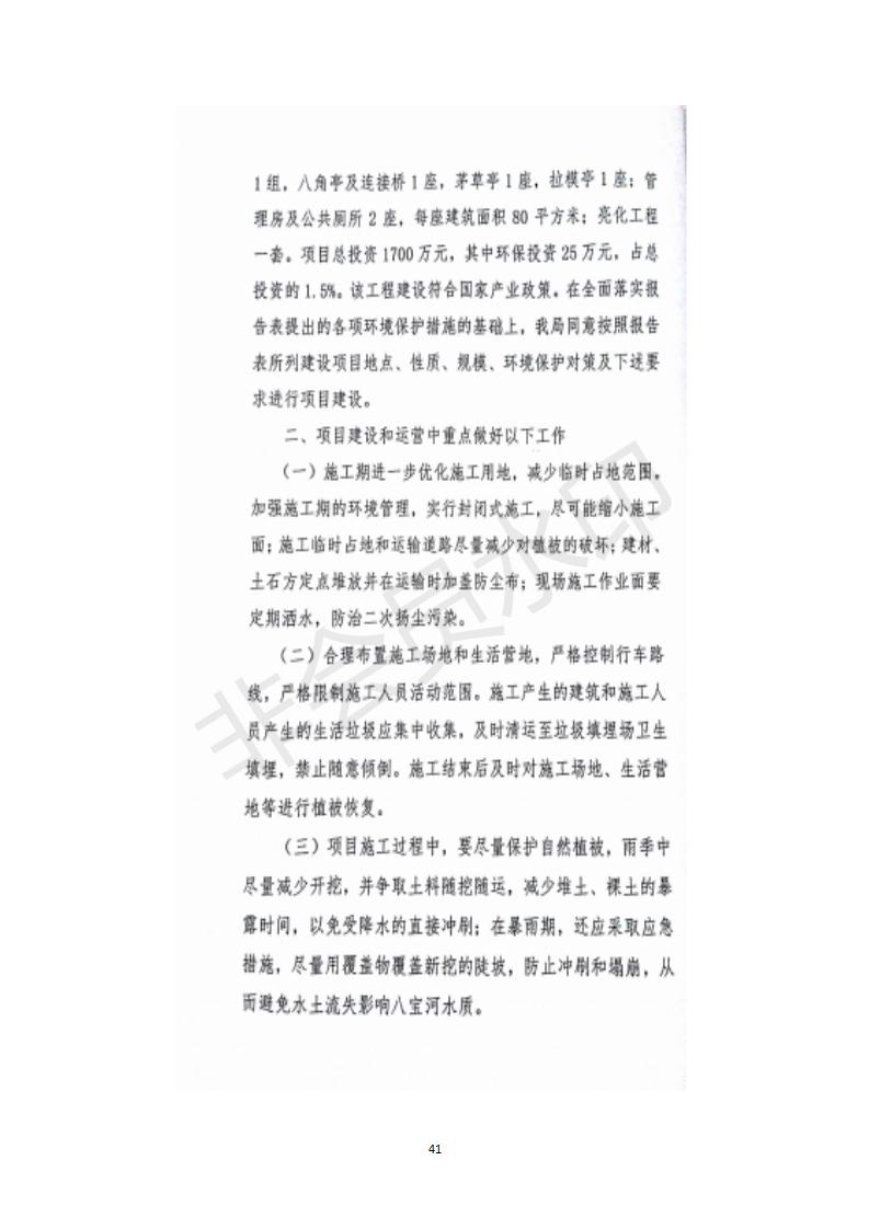 根據(jù)中華人民共和國務院令第682號《國務院關于修改〈建設項目環(huán)境保護管理條例〉的決定》和《建設項目竣工環(huán)境保護驗收暫行辦法》(國務院令682號),祁連縣二寺灘公園項目竣工環(huán)境保護驗收內容(包括竣工環(huán)境保護驗收調查表和驗收意見)公示如下。 一、項目名稱:祁連縣二寺灘公園項目竣工環(huán)境保護驗收調查表 二、地點:祁連縣八寶鎮(zhèn)城東生態(tài)組團片區(qū) 三、建設單位:祁連縣環(huán)境保護和林業(yè)局 四、建設內容:公園廣場入口、水景景觀、輔助工程、綠化建設 五、公示時間:二〇一九年三月十一日至二〇一九年四月八日 六、聯(lián)系人:張工 公示期間,對上述公示內容如有異議,請以書面形式反饋,個人須署真實姓名,單位須加蓋公章。