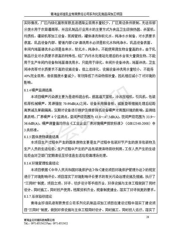 青海金祁連乳業(yè)有限責(zé)任公司系列化乳制品深加工項(xiàng)目竣工環(huán)境保護(hù)驗(yàn)收監(jiān)測報(bào)告表公示發(fā)布日期:(2019-7-10) 點(diǎn)擊次數(shù):2176 |