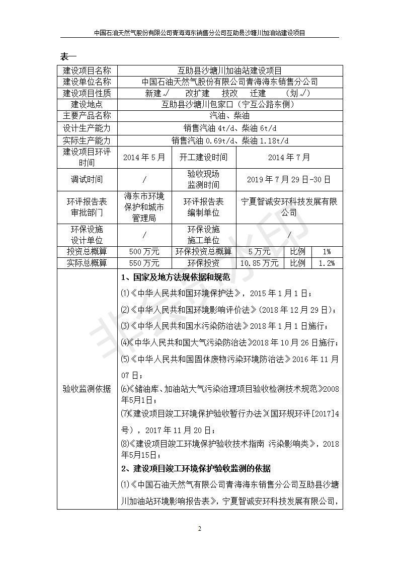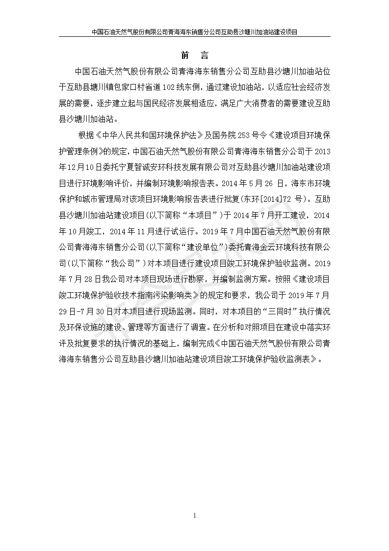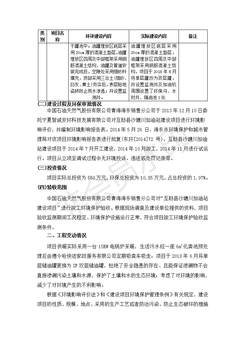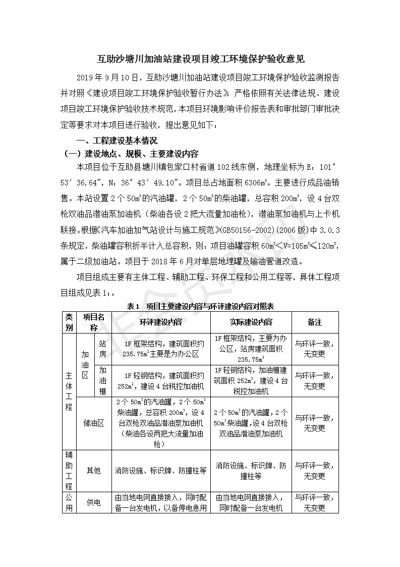 根據(jù)中華人民共和國(guó)國(guó)務(wù)院令第682號(hào)《國(guó)務(wù)院關(guān)于修改〈建設(shè)項(xiàng)目環(huán)境保護(hù)管理?xiàng)l例〉的決定》和《建設(shè)項(xiàng)目竣工環(huán)境保護(hù)驗(yàn)收暫行辦法》(國(guó)務(wù)院令682號(hào)),互助縣沙塘川加油站建設(shè)項(xiàng)目(包括竣工環(huán)境保護(hù)驗(yàn)收監(jiān)測(cè)報(bào)告表和驗(yàn)收意見(jiàn))公示如下。 一、項(xiàng)目名稱(chēng):互助縣沙塘川加油站建設(shè)項(xiàng)目 二、地點(diǎn):互助縣塘川鎮(zhèn)包家口村 六、聯(lián)系電話:0971-6515411 七、公示時(shí)間:二〇一九年九月二十七日至二〇一九年十月二十九日 公示期間,對(duì)上述公示內(nèi)容如有異議,請(qǐng)以書(shū)面形式反饋,個(gè)人須署真實(shí)姓名,單位須加蓋公章。