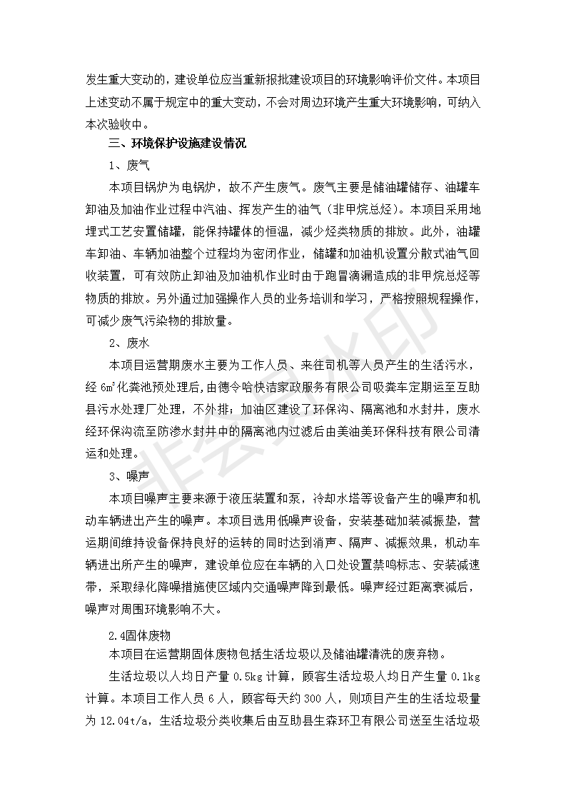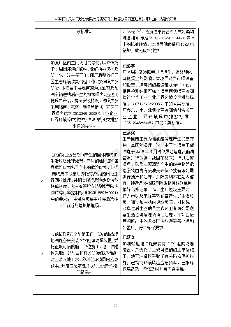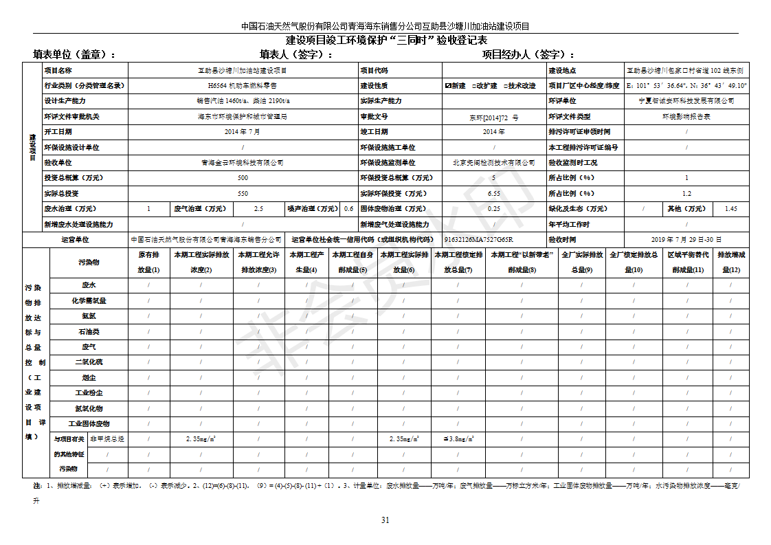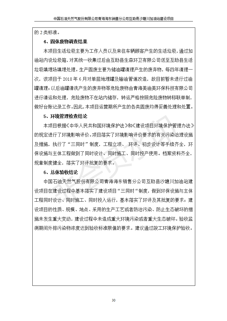 根據(jù)中華人民共和國(guó)國(guó)務(wù)院令第682號(hào)《國(guó)務(wù)院關(guān)于修改〈建設(shè)項(xiàng)目環(huán)境保護(hù)管理?xiàng)l例〉的決定》和《建設(shè)項(xiàng)目竣工環(huán)境保護(hù)驗(yàn)收暫行辦法》(國(guó)務(wù)院令682號(hào)),互助縣沙塘川加油站建設(shè)項(xiàng)目(包括竣工環(huán)境保護(hù)驗(yàn)收監(jiān)測(cè)報(bào)告表和驗(yàn)收意見(jiàn))公示如下。 一、項(xiàng)目名稱(chēng):互助縣沙塘川加油站建設(shè)項(xiàng)目 二、地點(diǎn):互助縣塘川鎮(zhèn)包家口村 六、聯(lián)系電話:0971-6515411 七、公示時(shí)間:二〇一九年九月二十七日至二〇一九年十月二十九日 公示期間,對(duì)上述公示內(nèi)容如有異議,請(qǐng)以書(shū)面形式反饋,個(gè)人須署真實(shí)姓名,單位須加蓋公章。