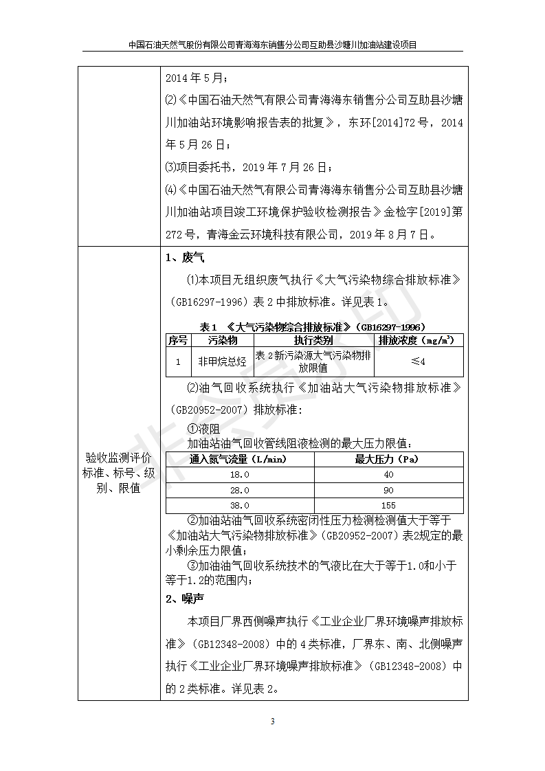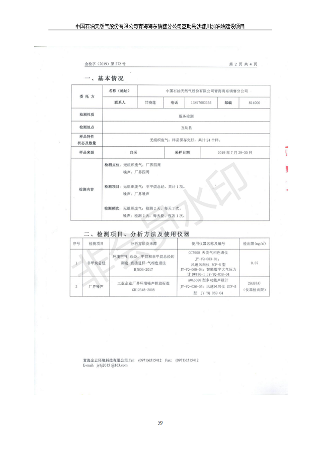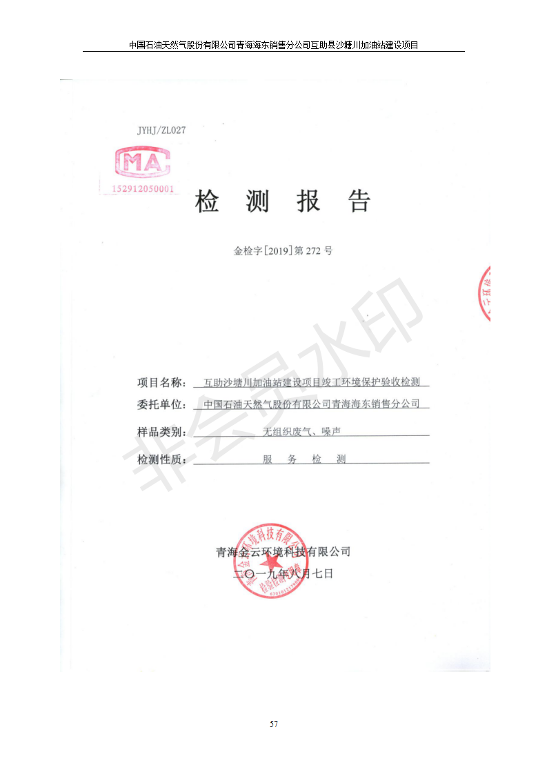 互助縣沙塘川加油站建設(shè)項(xiàng)目竣工環(huán)境保護(hù)驗(yàn)收監(jiān)測(cè)報(bào)告表發(fā)布日期:(2019-9-27) 點(diǎn)擊次數(shù):2237 |