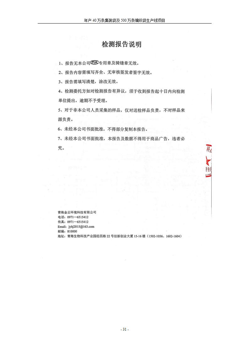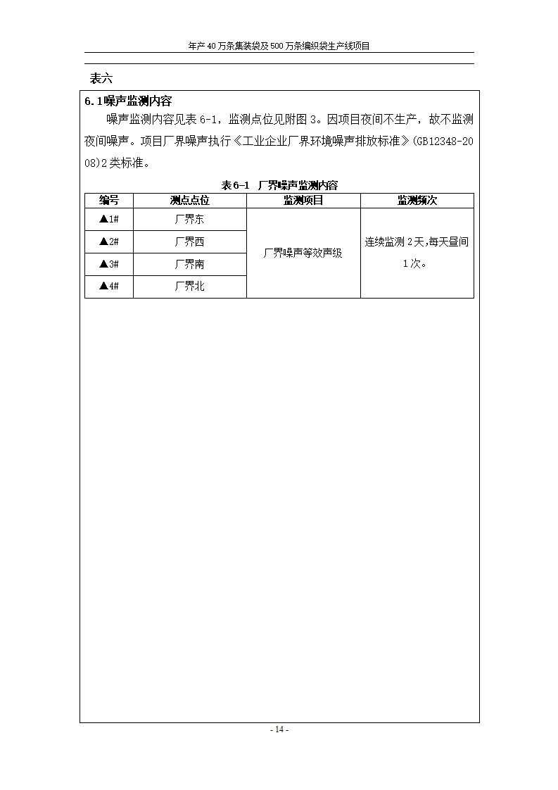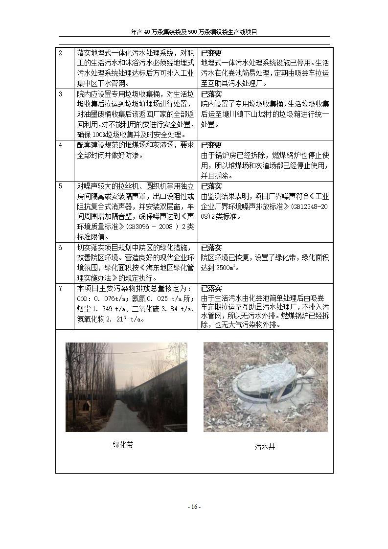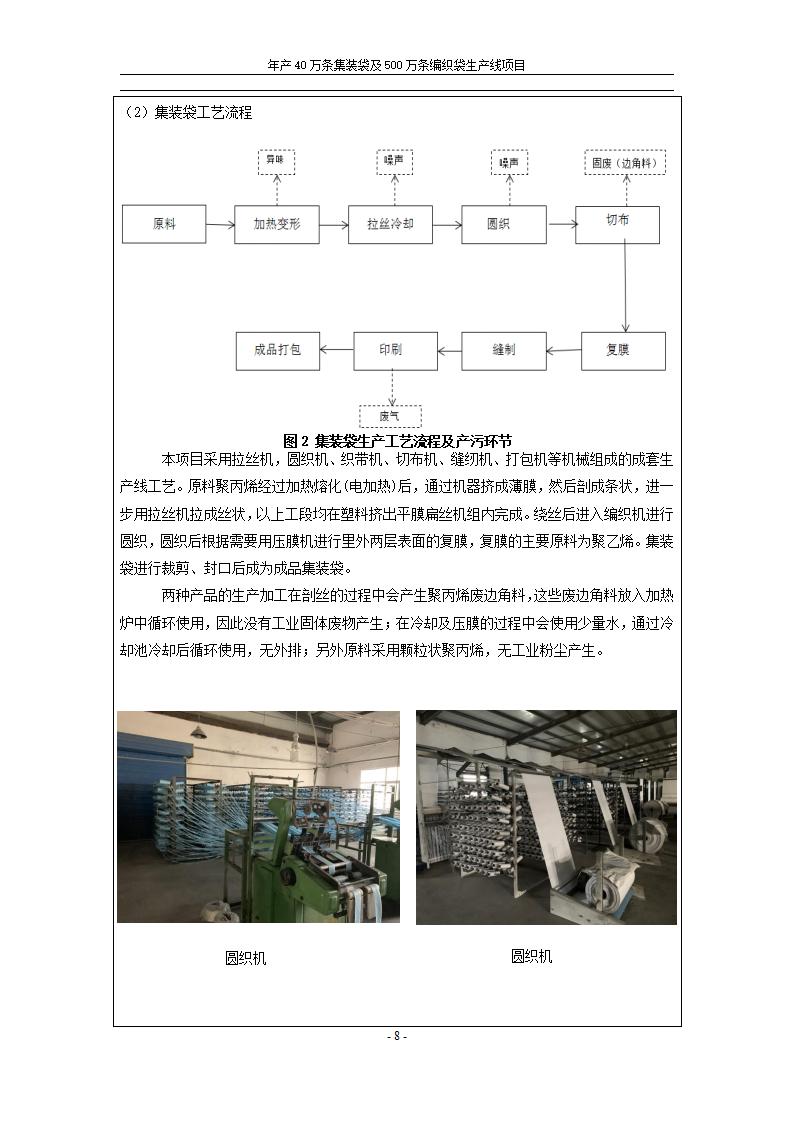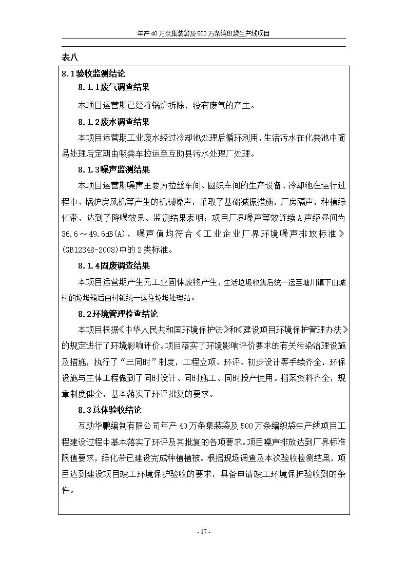 年產(chǎn)40萬條集裝袋及500萬條編織袋生產(chǎn)線項(xiàng)目竣工環(huán)境保護(hù)驗(yàn)收監(jiān)測報告表公示發(fā)布日期:(2020-1-13) 點(diǎn)擊次數(shù):2436 |