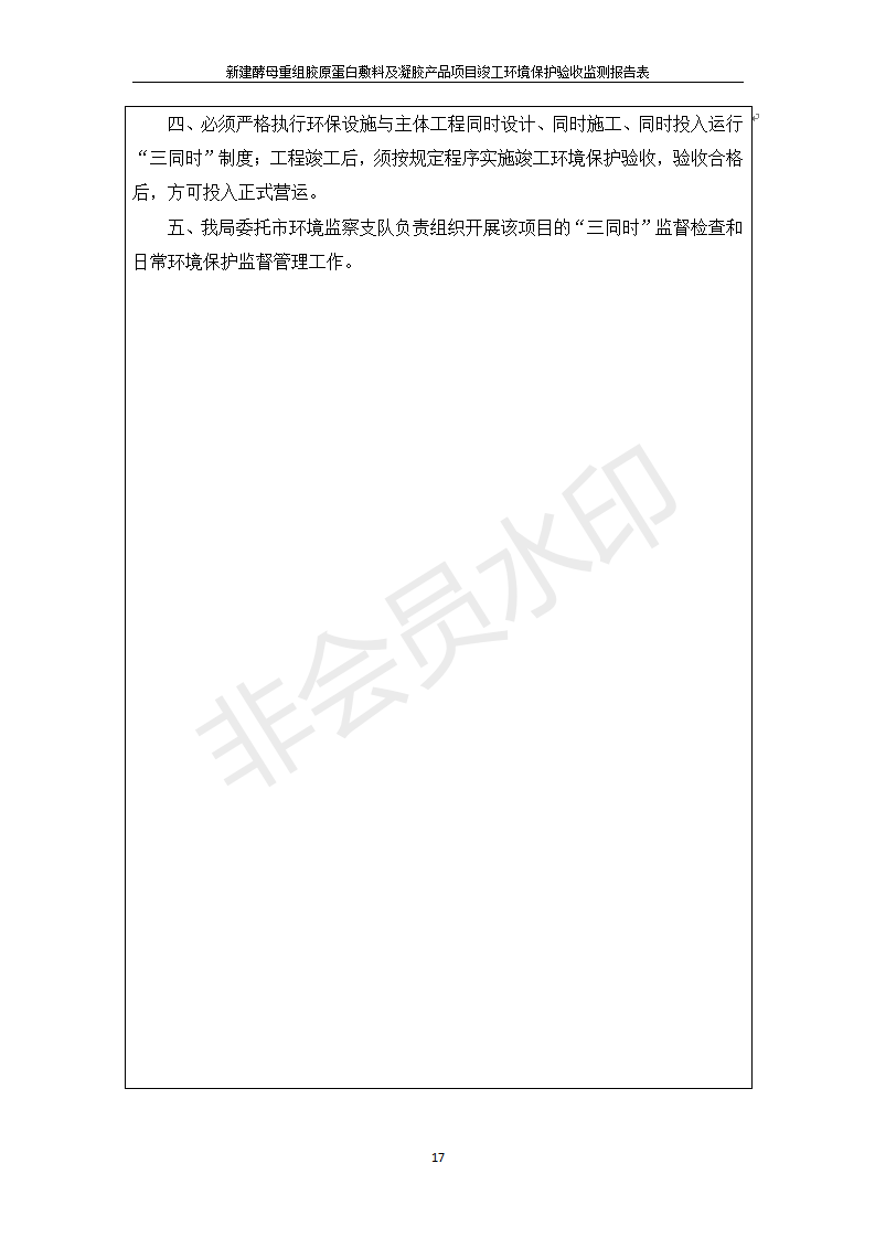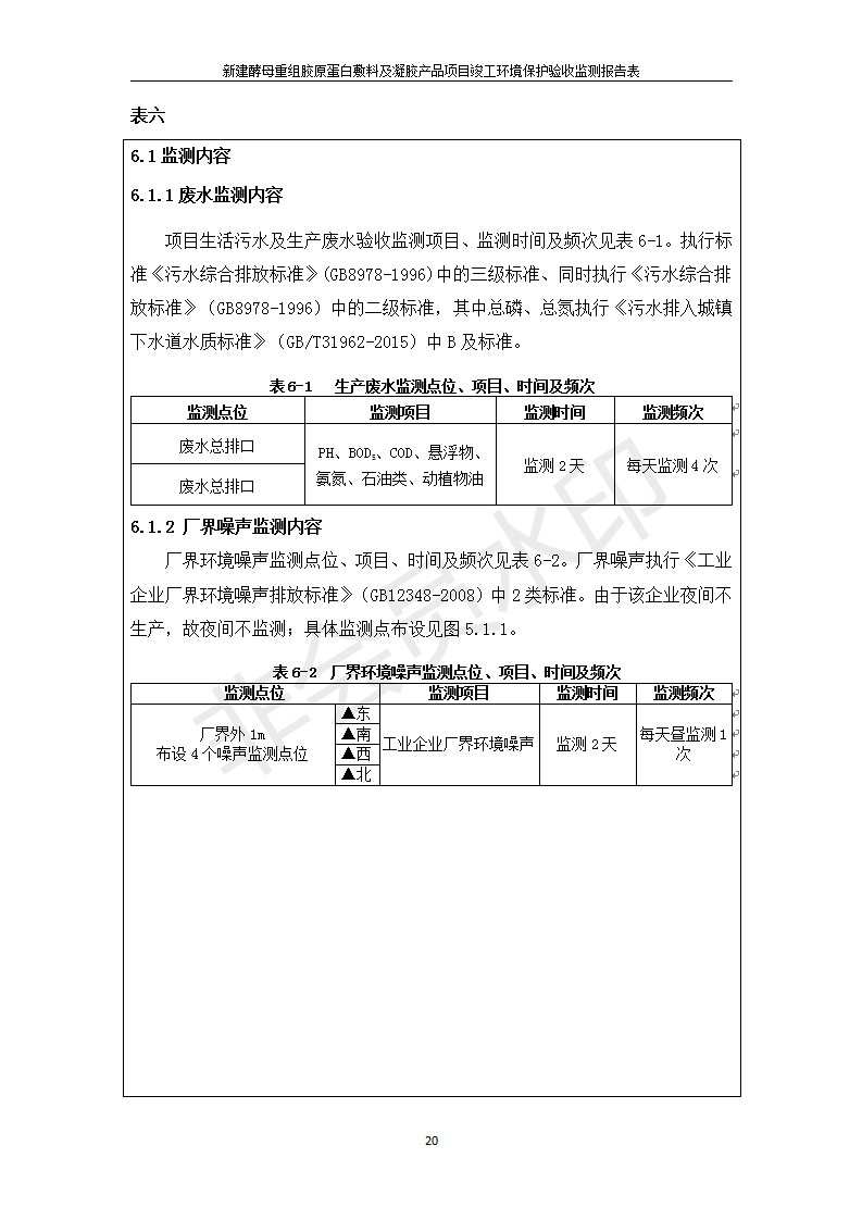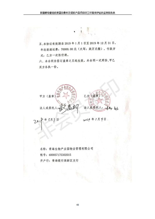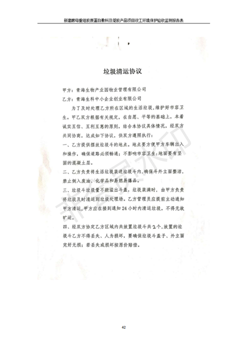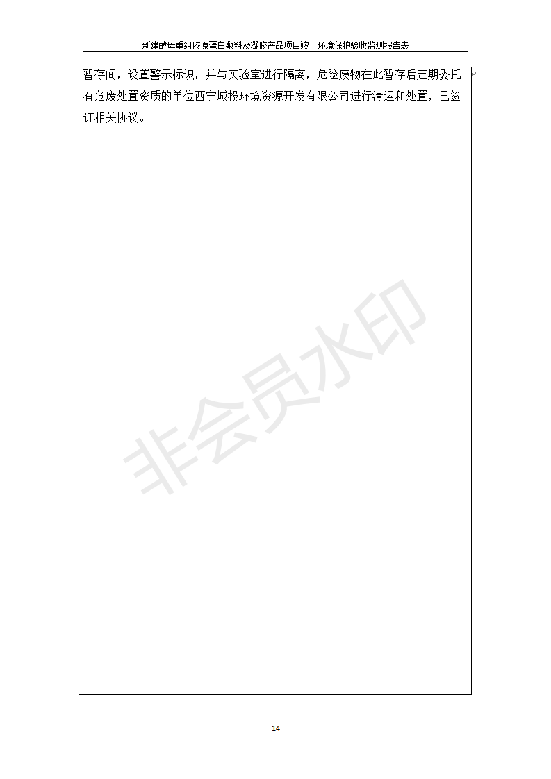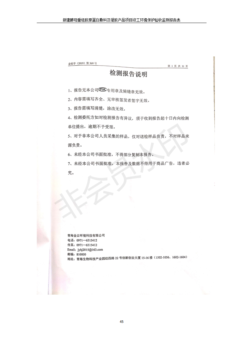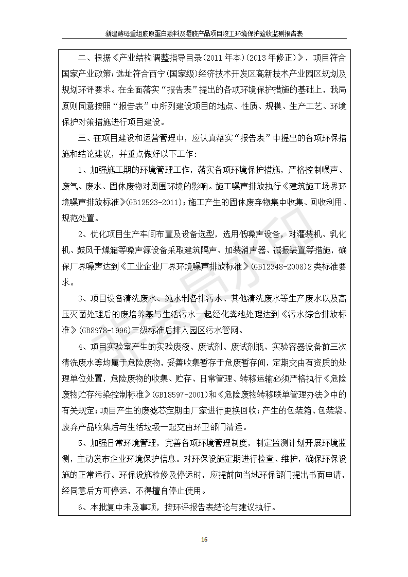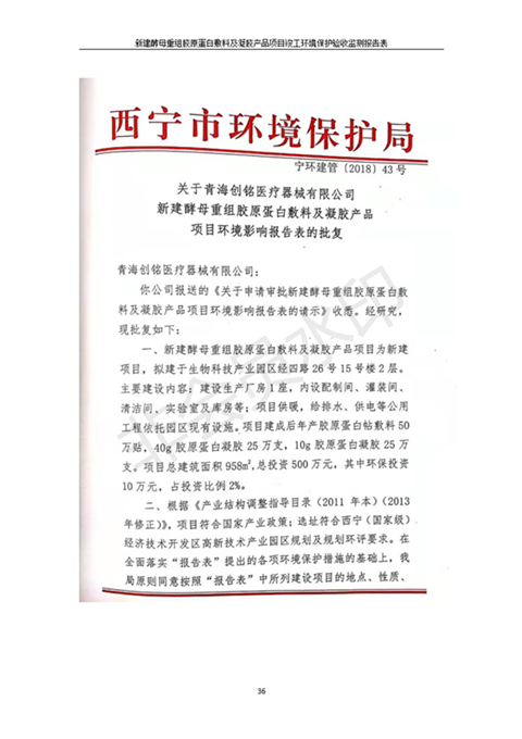 根據(jù)中華人民共和國(guó)國(guó)務(wù)院令第682號(hào)《國(guó)務(wù)院關(guān)于修改〈建設(shè)項(xiàng)目環(huán)境保護(hù)管理?xiàng)l例〉的決定》和《建設(shè)項(xiàng)目竣工環(huán)境保護(hù)驗(yàn)收暫行辦法》(國(guó)務(wù)院令682號(hào)),新建酵母重組膠原蛋白敷料及凝膠產(chǎn)品項(xiàng)目(包括竣工環(huán)境保護(hù)驗(yàn)收監(jiān)測(cè)報(bào)告表和驗(yàn)收意見)公示如下。 一、項(xiàng)目名稱:新建酵母重組膠原蛋白敷料及凝膠產(chǎn)品項(xiàng)目 二、地點(diǎn):西寧市生物園區(qū)經(jīng)四路26號(hào)15號(hào)樓2層 五、聯(lián)系人:董繼風(fēng) 六、聯(lián)系電話:18606125050 七、公示時(shí)間:二〇二〇年一月十三日至二〇二〇年二月十二日 公示期間,對(duì)上述公示內(nèi)容如有異議,請(qǐng)以書面形式反饋,個(gè)人須署真實(shí)姓名,單位須加蓋公章。