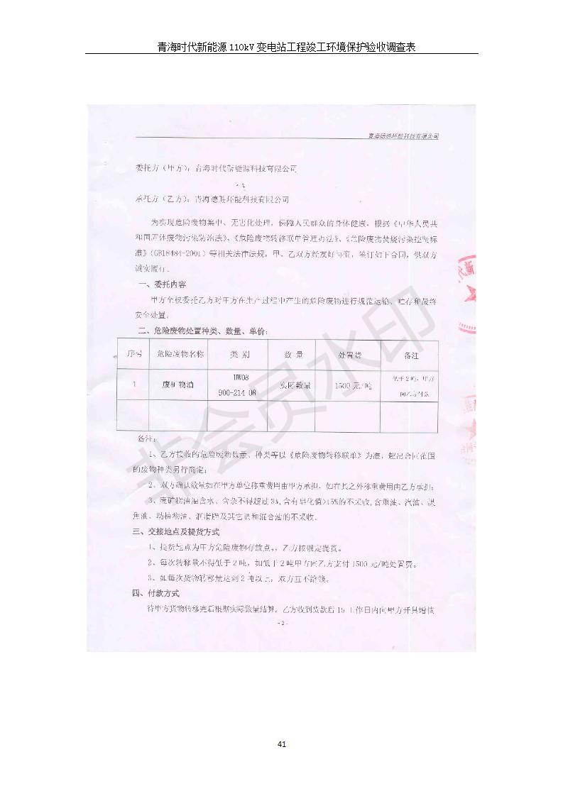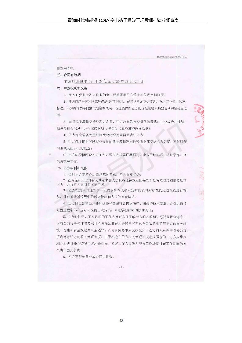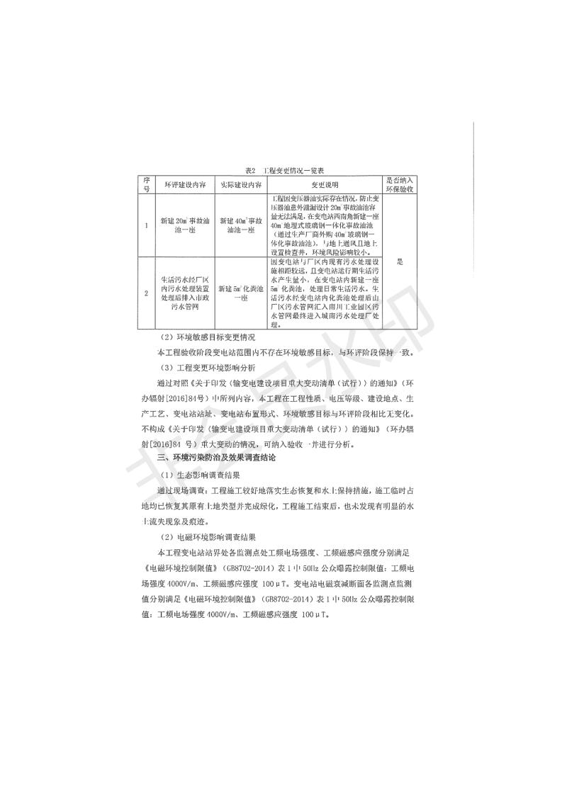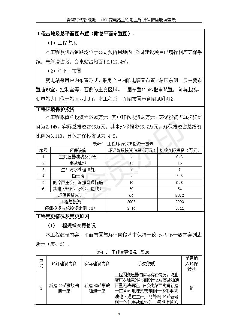 根據(jù)中華人民共和國國務(wù)院令第682號《國務(wù)院關(guān)于修改〈建設(shè)項(xiàng)目環(huán)境保護(hù)管理?xiàng)l例〉的決定》和《建設(shè)項(xiàng)目竣工環(huán)境保護(hù)驗(yàn)收暫行辦法》(國務(wù)院令682號),青海時代新能源110kV變電站工程(包括竣工環(huán)境保護(hù)驗(yàn)收調(diào)查表和驗(yàn)收意見)公示如下。 一、項(xiàng)目名稱:青海時代新能源110kV變電站工程 二、地點(diǎn):青海省西寧市南川工業(yè)園區(qū)創(chuàng)業(yè)路182號青海時代新能源科技有限公司廠區(qū)內(nèi) 三、建設(shè)單位:青海時代新能源科技有限公司 四、建設(shè)內(nèi)容:青海時代新能源 110kV 變電站采用全戶內(nèi)布置方式,依據(jù)環(huán)評報(bào)告及批復(fù)文件,經(jīng)現(xiàn)場踏勘本工程建設(shè)只包含變電站建設(shè)部分,輸電線路由南川工業(yè)園區(qū)管委會負(fù)責(zé)建設(shè),輸電線路不屬于本次驗(yàn)收調(diào)查范圍。工程本期規(guī)模2×31.5MVA,電壓等級為110/10kV。變電站 110kV 出線間隔最終2回,本期建設(shè)出線間隔2回;10kV最終電纜出線8回,本期電纜出線6回。 五、聯(lián)系人:張工 六、聯(lián)系電話:0971-6515411 七、公示時間:二〇二〇年一月十四日至二〇二〇年二月十三日 公示期間,對上述公示內(nèi)容如有異議,請以書面形式反饋,個人須署真實(shí)姓名,單位須加蓋公章。