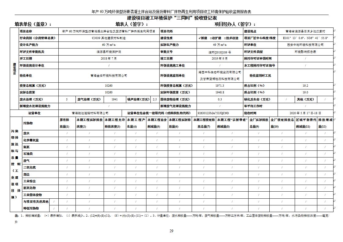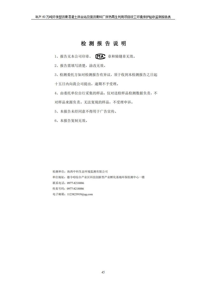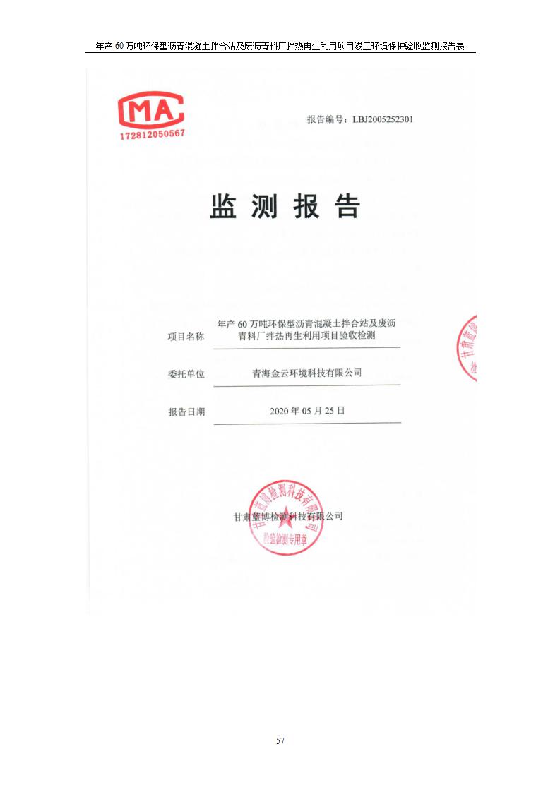 年產(chǎn)60萬噸環(huán)保型瀝青混凝土拌合站及廢瀝青料廠拌熱再生利用項(xiàng)目竣工環(huán)境保護(hù)驗(yàn)收監(jiān)測(cè)報(bào)告表公示發(fā)布日期:(2020-7-6) 點(diǎn)擊次數(shù):3945 |