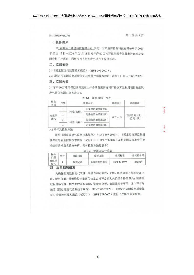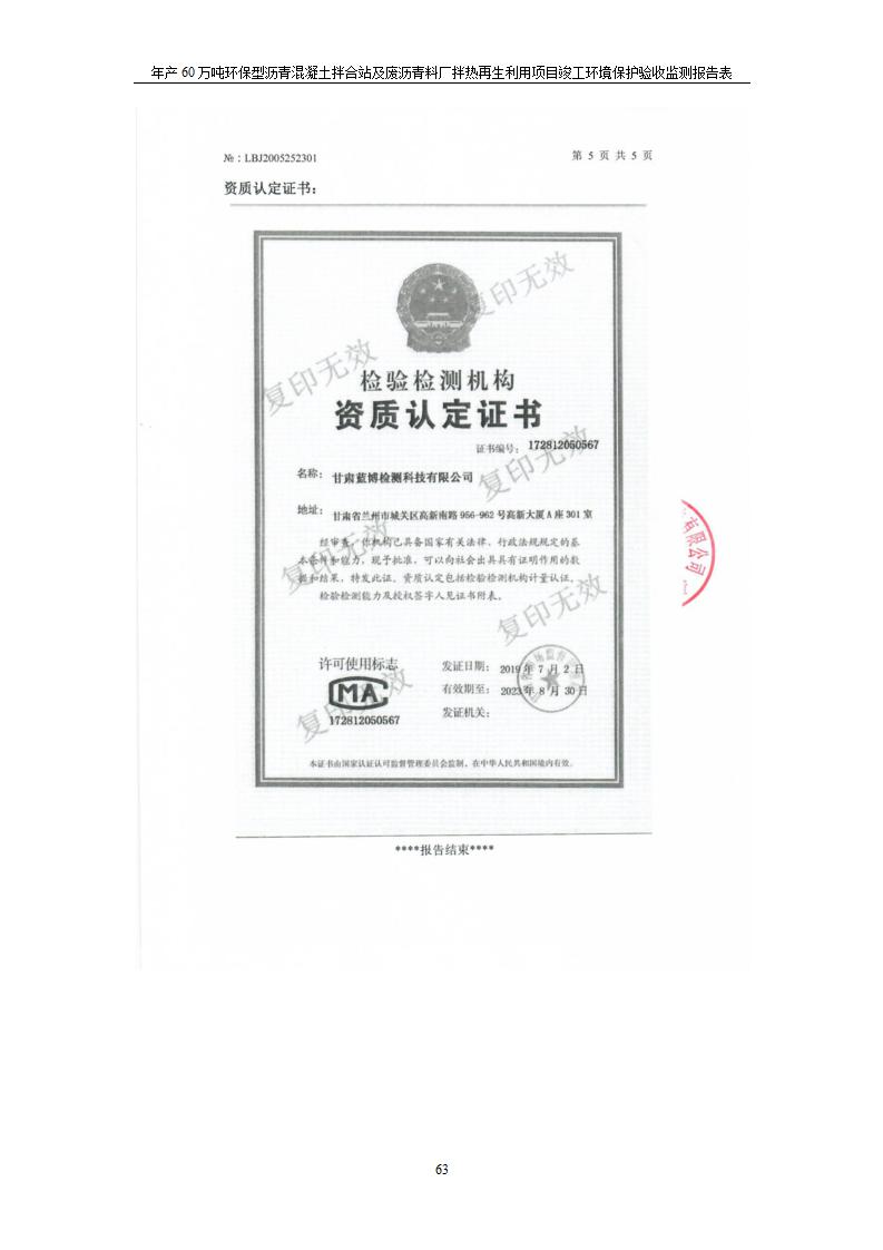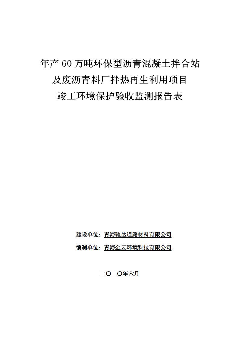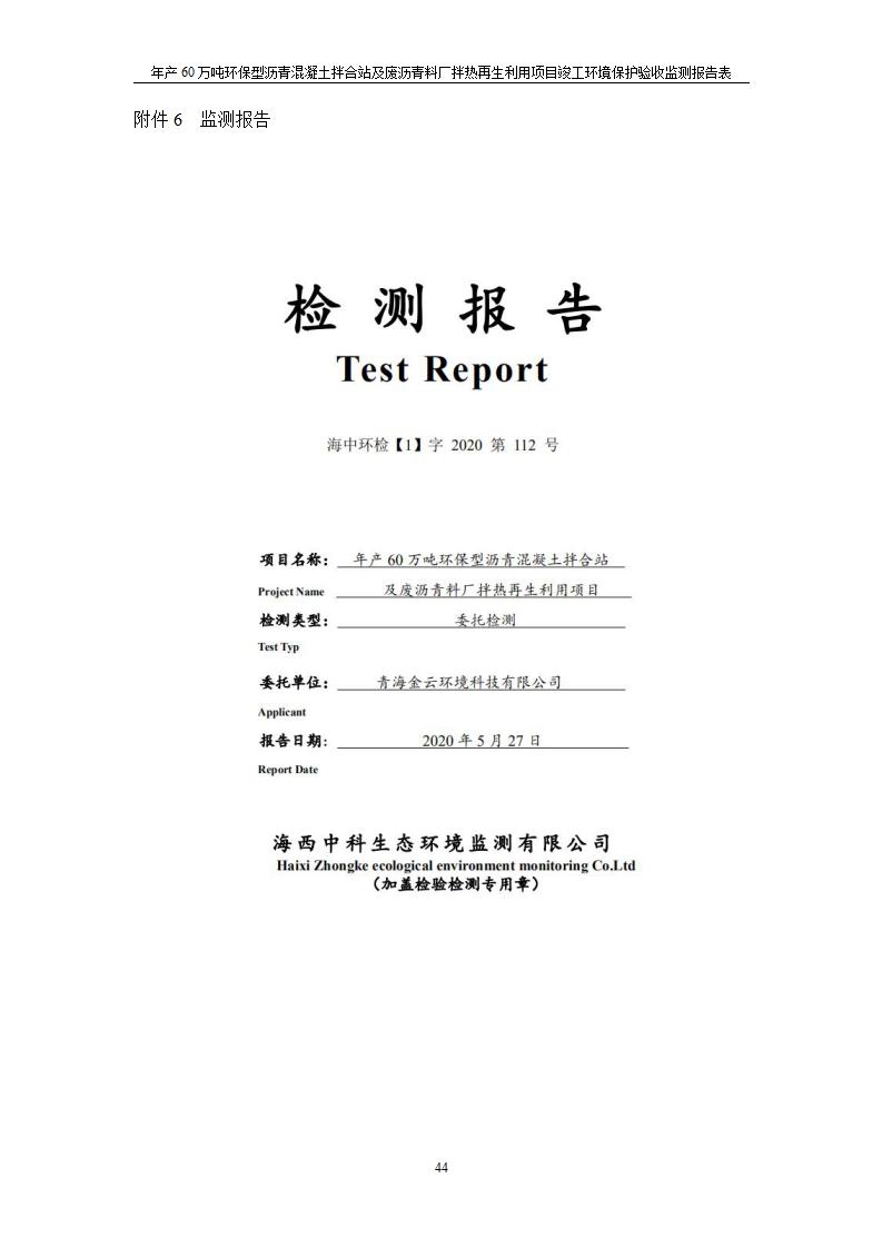 年產(chǎn)60萬噸環(huán)保型瀝青混凝土拌合站及廢瀝青料廠拌熱再生利用項(xiàng)目竣工環(huán)境保護(hù)驗(yàn)收監(jiān)測(cè)報(bào)告表公示發(fā)布日期:(2020-7-6) 點(diǎn)擊次數(shù):3945 |