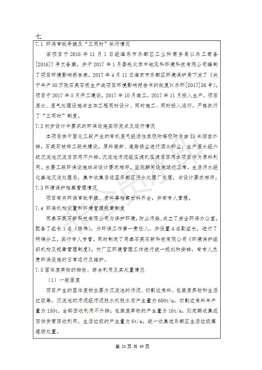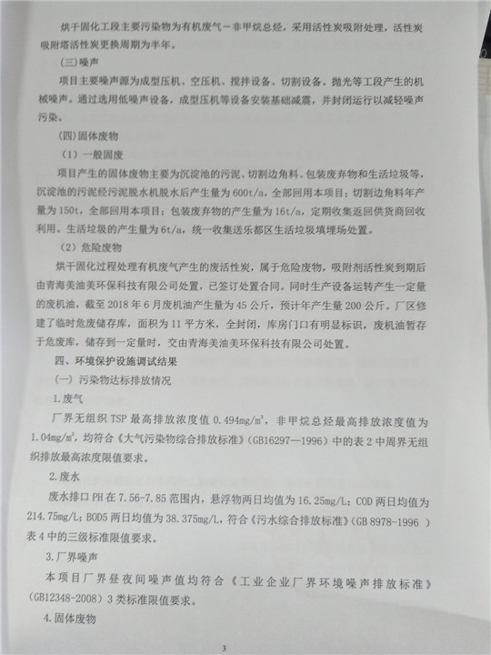 根據(jù)中華人民共和國國務(wù)院令第253號《建設(shè)項(xiàng)目環(huán)境保護(hù)管理?xiàng)l例》(中華人民共和國國務(wù)院令第682號《國務(wù)院關(guān)于修改〈建設(shè)項(xiàng)目環(huán)境保護(hù)管理?xiàng)l例〉的決定》和《建設(shè)項(xiàng)目竣工環(huán)境保護(hù)驗(yàn)收暫行辦法》,嚴(yán)格依照有關(guān)法律法規(guī),建設(shè)項(xiàng)目環(huán)境保護(hù)設(shè)施驗(yàn)收技術(shù)規(guī)范,本項(xiàng)目環(huán)評報告表和環(huán)保審批部門審批意見以及企業(yè)自行驗(yàn)收相關(guān)要求等對本項(xiàng)目進(jìn)行驗(yàn)收,本項(xiàng)目符合環(huán)保驗(yàn)收條件,可以通過環(huán)保驗(yàn)收。 海東市樂都區(qū)同泰科技有限公司竣工環(huán)境保護(hù)驗(yàn)收監(jiān)測報告公示