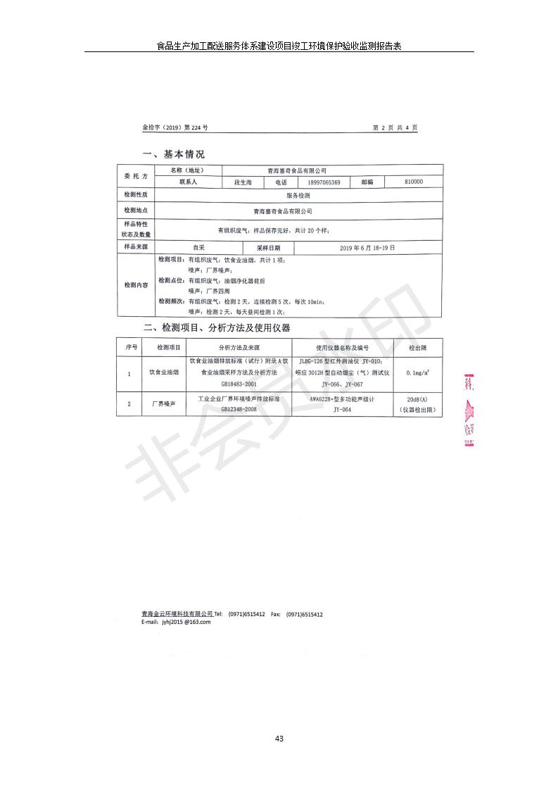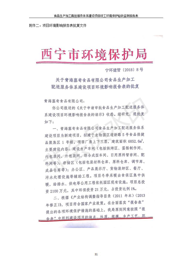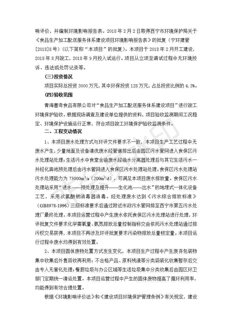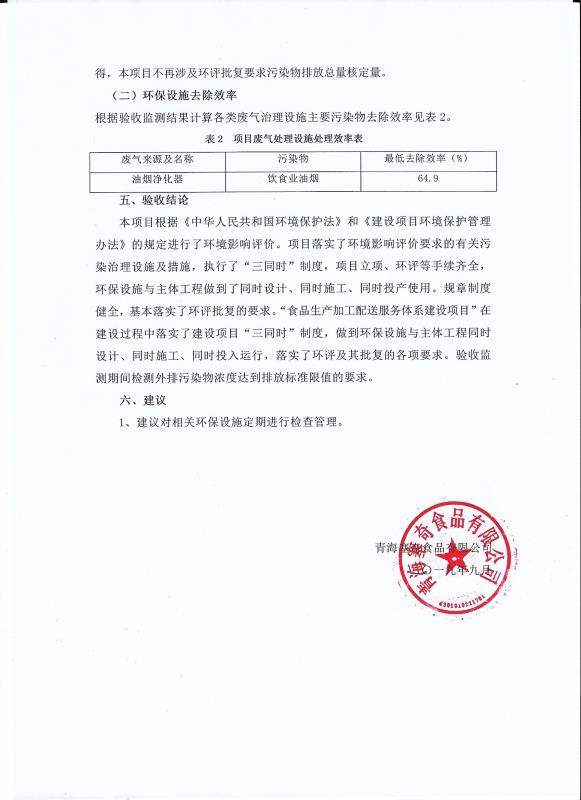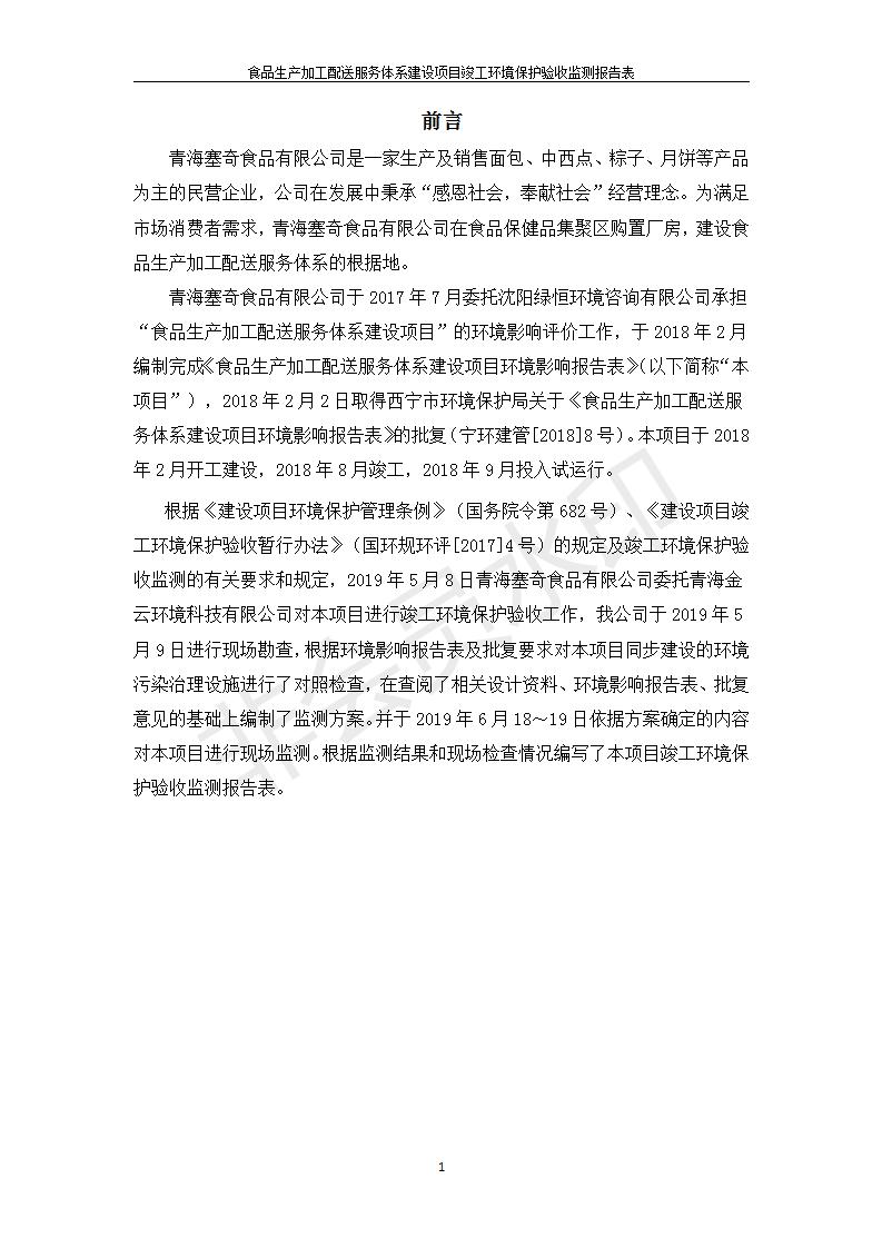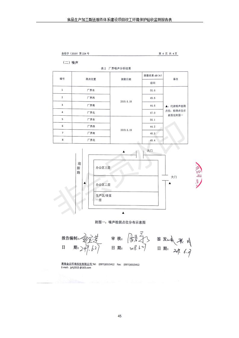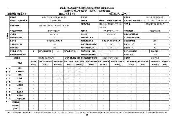 根據(jù)中華人民共和國國務院令第682號《國務院關于修改〈建設項目環(huán)境保護管理條例〉的決定》和《建設項目竣工環(huán)境保護驗收暫行辦法》(國務院令682號),食品生產(chǎn)加工配送服務體系建設項目(包括竣工環(huán)境保護驗收監(jiān)測報告表和驗收意見)公示如下。 一、項目名稱:食品生產(chǎn)加工配送服務體系建設項目 二、地點:西寧市城北區(qū)生物園區(qū)迎新路5號食品保健品集聚區(qū)1號樓 六、聯(lián)系電 話:0971-6515411 七、公示時間:二〇一九年九月二十日至二〇一九年十月二十二日 公示期間,對上述公示內(nèi)容如有異議,請以書面形式反饋,個人須署真實姓名,單位須加蓋公章。