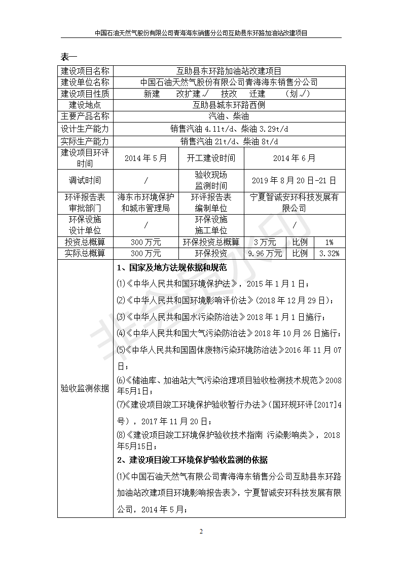 互助縣東環(huán)路加油站改建項(xiàng)目竣工環(huán)境保護(hù)驗(yàn)收監(jiān)測(cè)報(bào)告表公示發(fā)布日期:(2019-9-27) 點(diǎn)擊次數(shù):2327 |