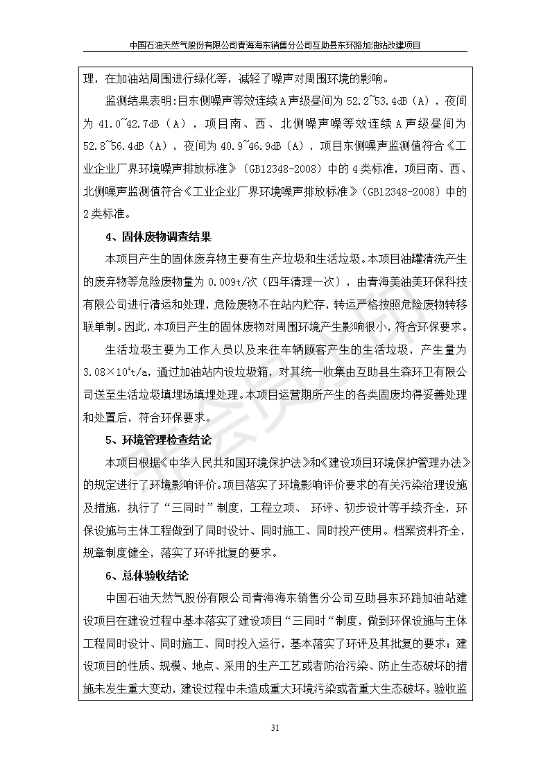 | 上一篇:互助縣東和加油站原址擴(kuò)建項(xiàng)目 竣工環(huán)境保護(hù)驗(yàn)收監(jiān)測(cè)報(bào)告表公示 | 下一篇:互助縣沙塘川加油站建設(shè)項(xiàng)目竣工環(huán)境保護(hù)驗(yàn)收監(jiān)測(cè)報(bào)告表 |