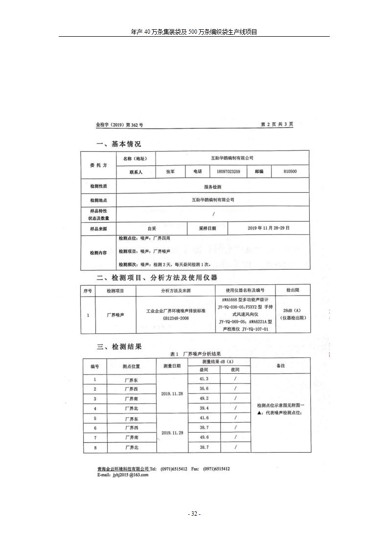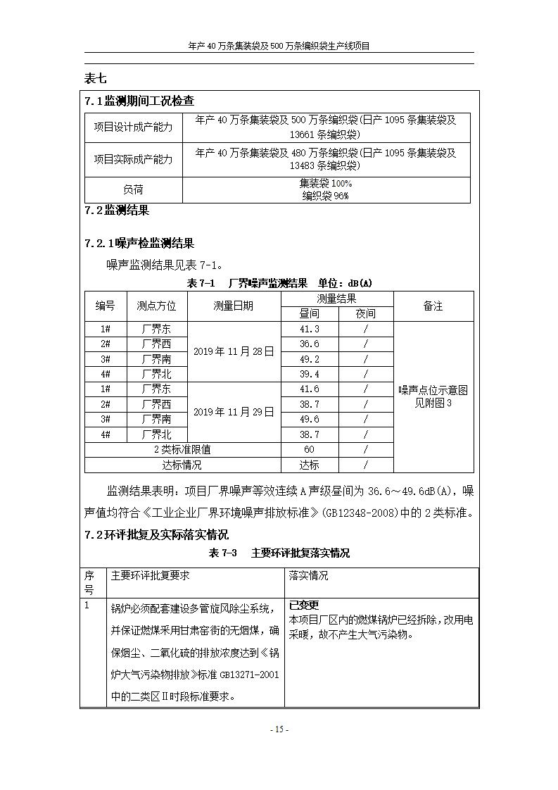 年產(chǎn)40萬條集裝袋及500萬條編織袋生產(chǎn)線項(xiàng)目竣工環(huán)境保護(hù)驗(yàn)收監(jiān)測報(bào)告表公示發(fā)布日期:(2020-1-13) 點(diǎn)擊次數(shù):2446 |
