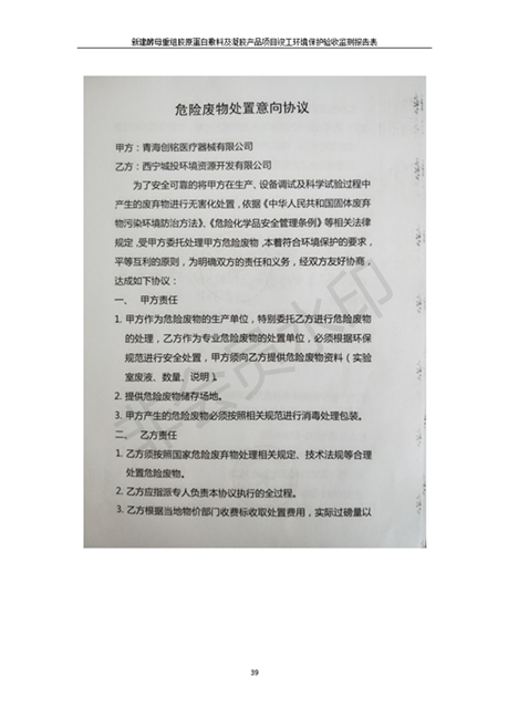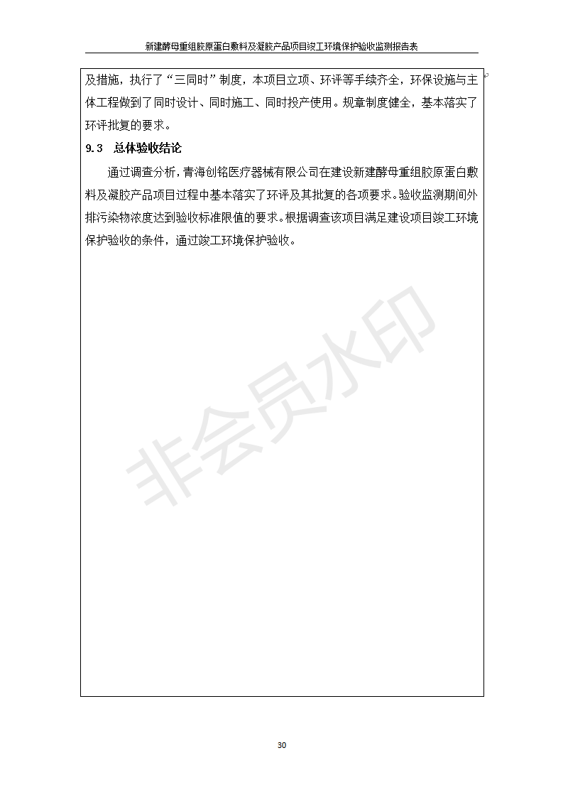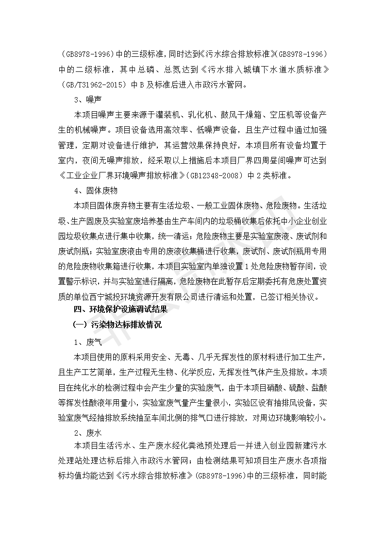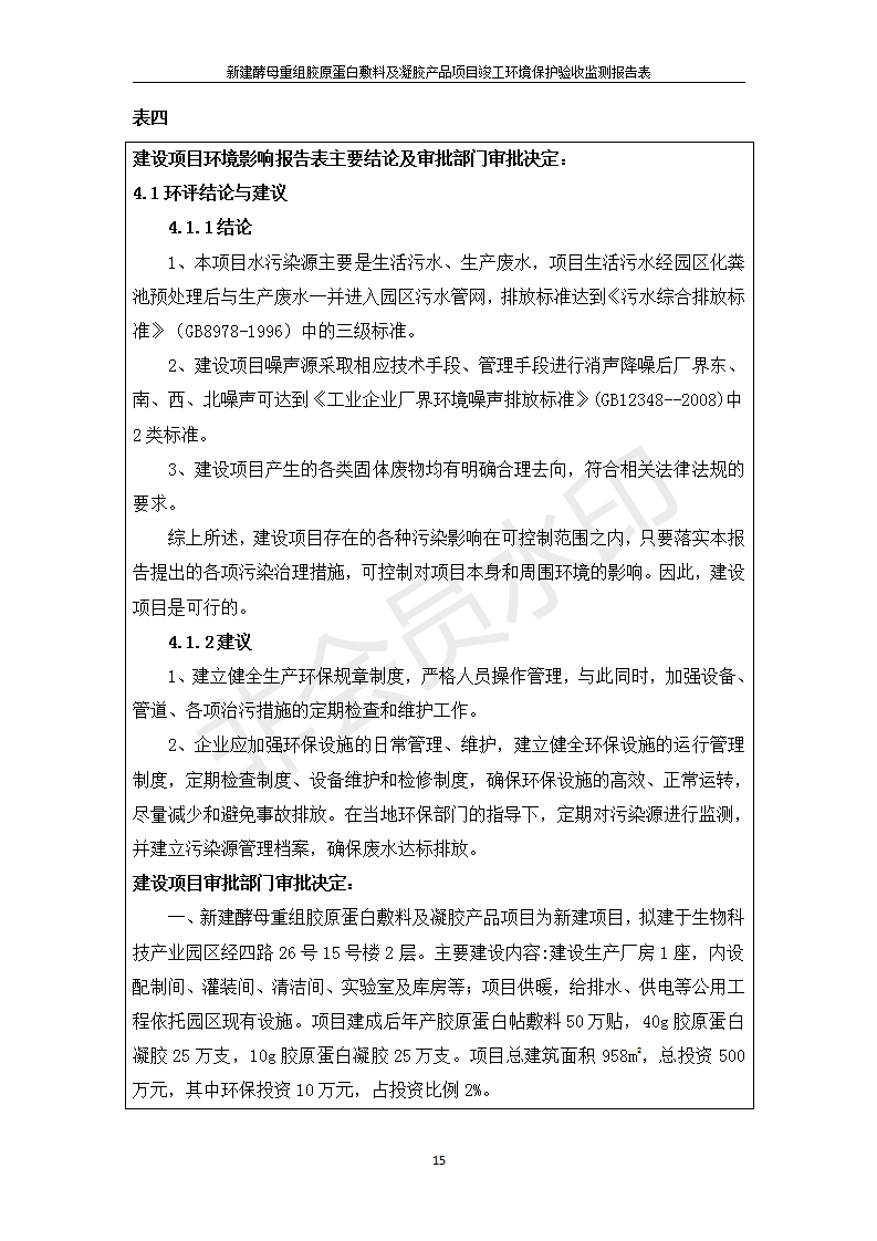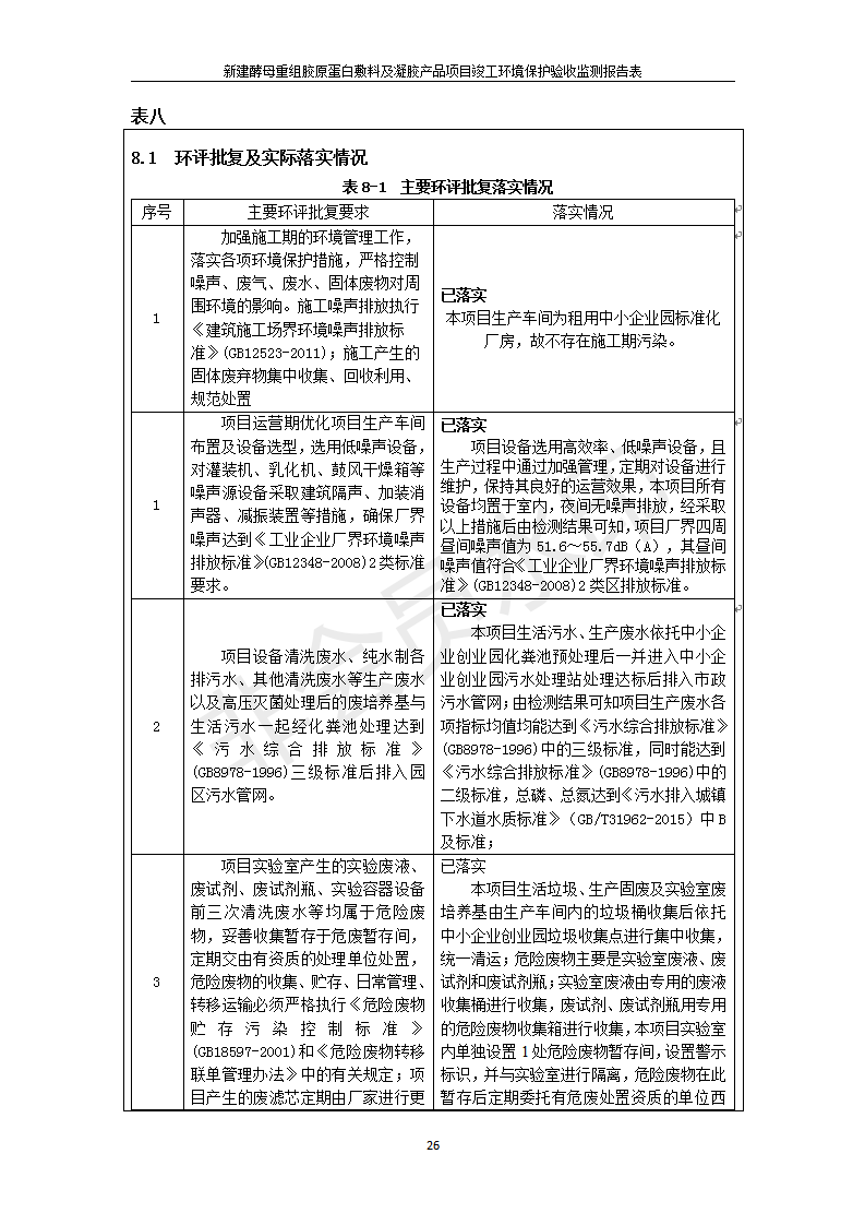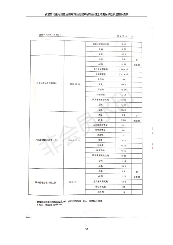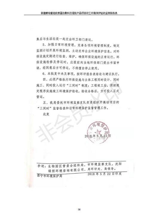 根據(jù)中華人民共和國國務(wù)院令第682號(hào)《國務(wù)院關(guān)于修改〈建設(shè)項(xiàng)目環(huán)境保護(hù)管理?xiàng)l例〉的決定》和《建設(shè)項(xiàng)目竣工環(huán)境保護(hù)驗(yàn)收暫行辦法》(國務(wù)院令682號(hào)),新建酵母重組膠原蛋白敷料及凝膠產(chǎn)品項(xiàng)目(包括竣工環(huán)境保護(hù)驗(yàn)收監(jiān)測報(bào)告表和驗(yàn)收意見)公示如下。 一、項(xiàng)目名稱:新建酵母重組膠原蛋白敷料及凝膠產(chǎn)品項(xiàng)目 二、地點(diǎn):西寧市生物園區(qū)經(jīng)四路26號(hào)15號(hào)樓2層 五、聯(lián)系人:董繼風(fēng) 六、聯(lián)系電話:18606125050 七、公示時(shí)間:二〇二〇年一月十三日至二〇二〇年二月十二日 公示期間,對上述公示內(nèi)容如有異議,請以書面形式反饋,個(gè)人須署真實(shí)姓名,單位須加蓋公章。