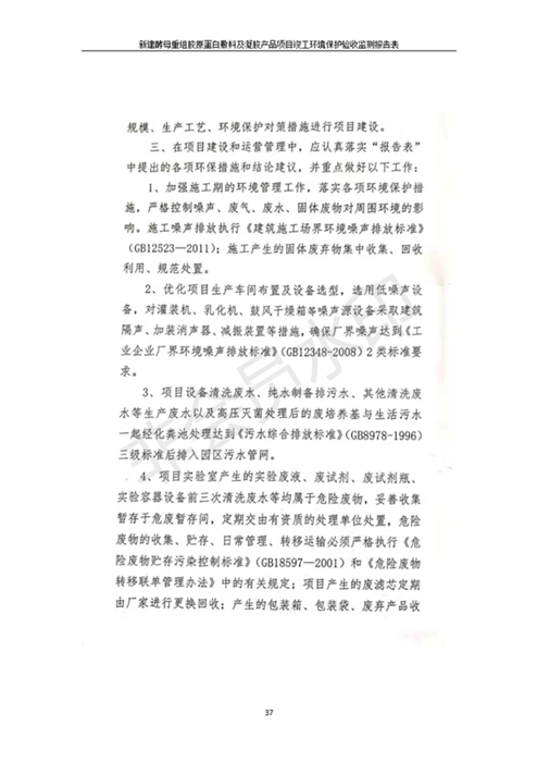 新建酵母重組膠原蛋白敷料及凝膠產(chǎn)品項(xiàng)目竣工環(huán)境保護(hù)驗(yàn)收監(jiān)測報(bào)告表公示發(fā)布日期:(2020-1-13) 點(diǎn)擊次數(shù):3582 |