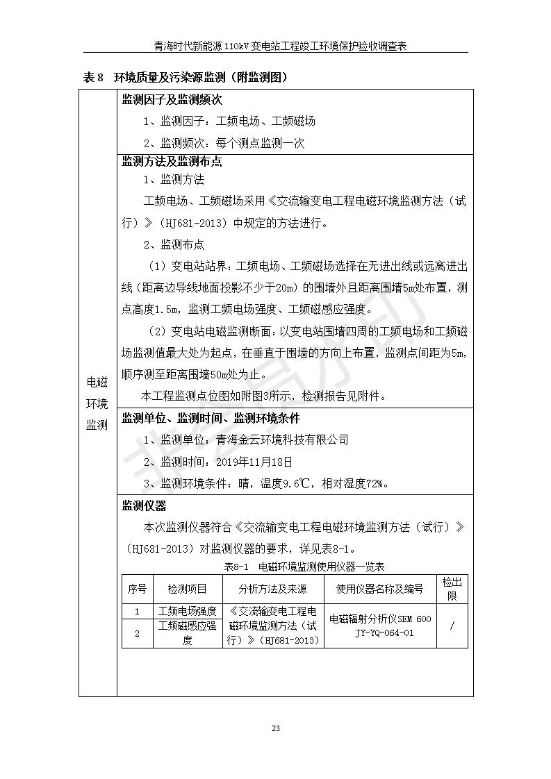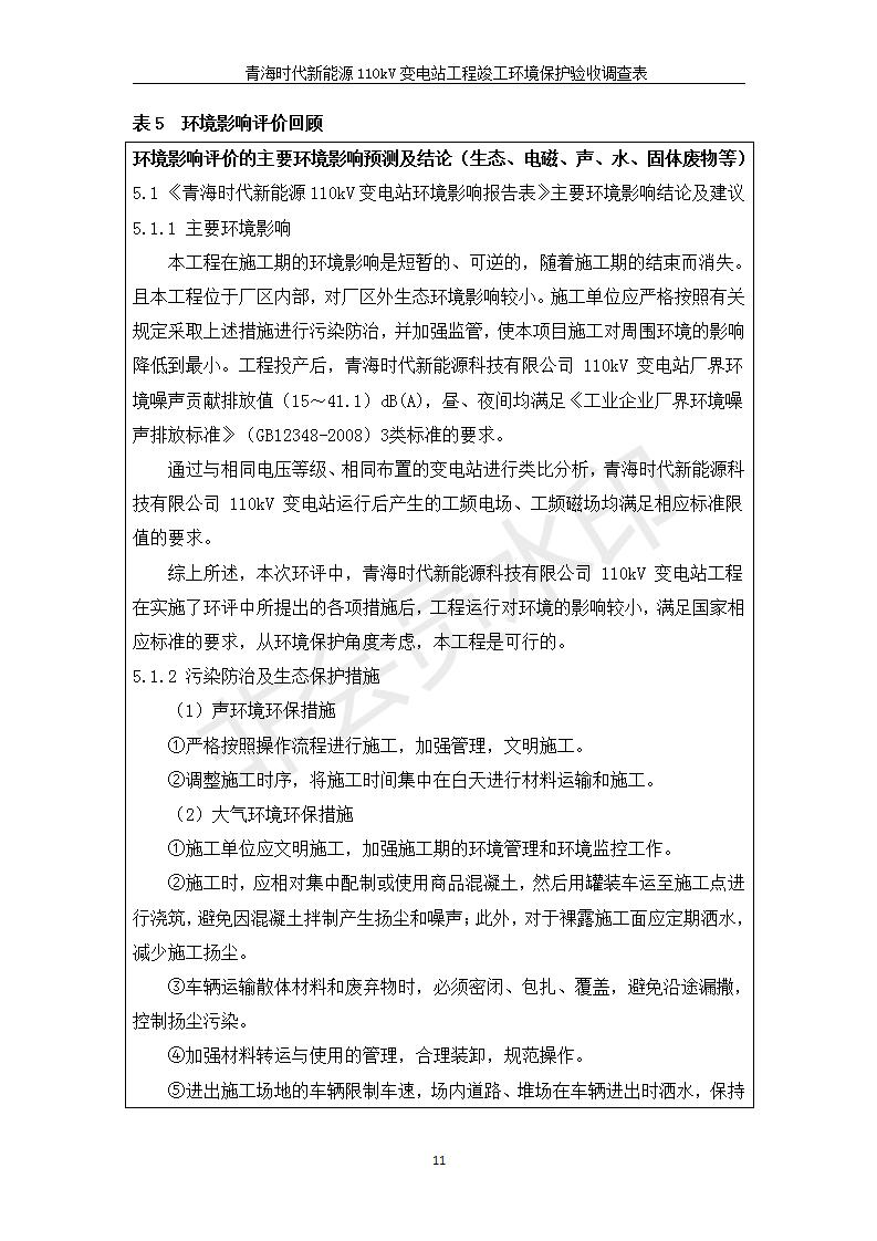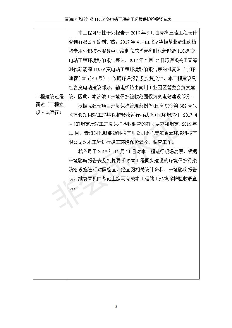青海時代新能源110kV變電站工程竣工環(huán)境保護驗收調(diào)查表公示發(fā)布日期:(2020-1-14) 點擊次數(shù):2678 |