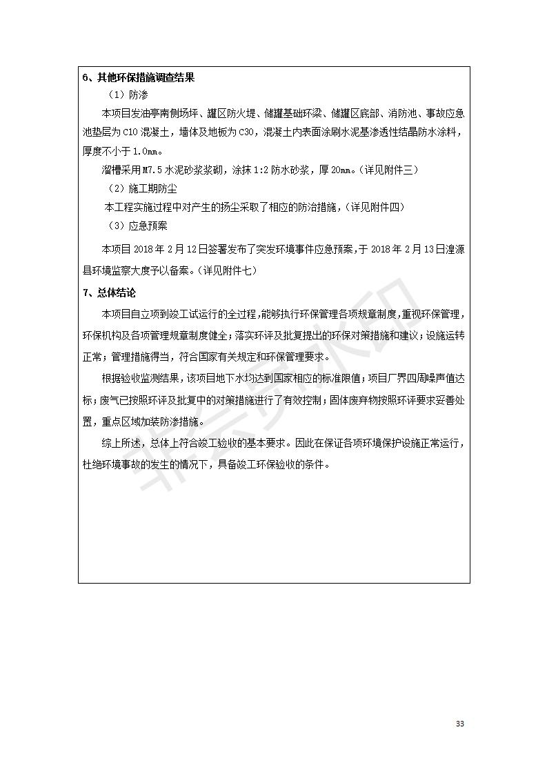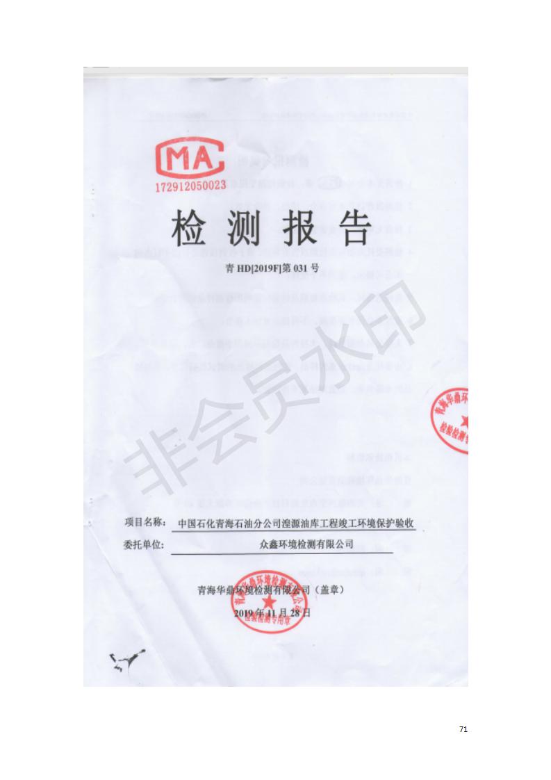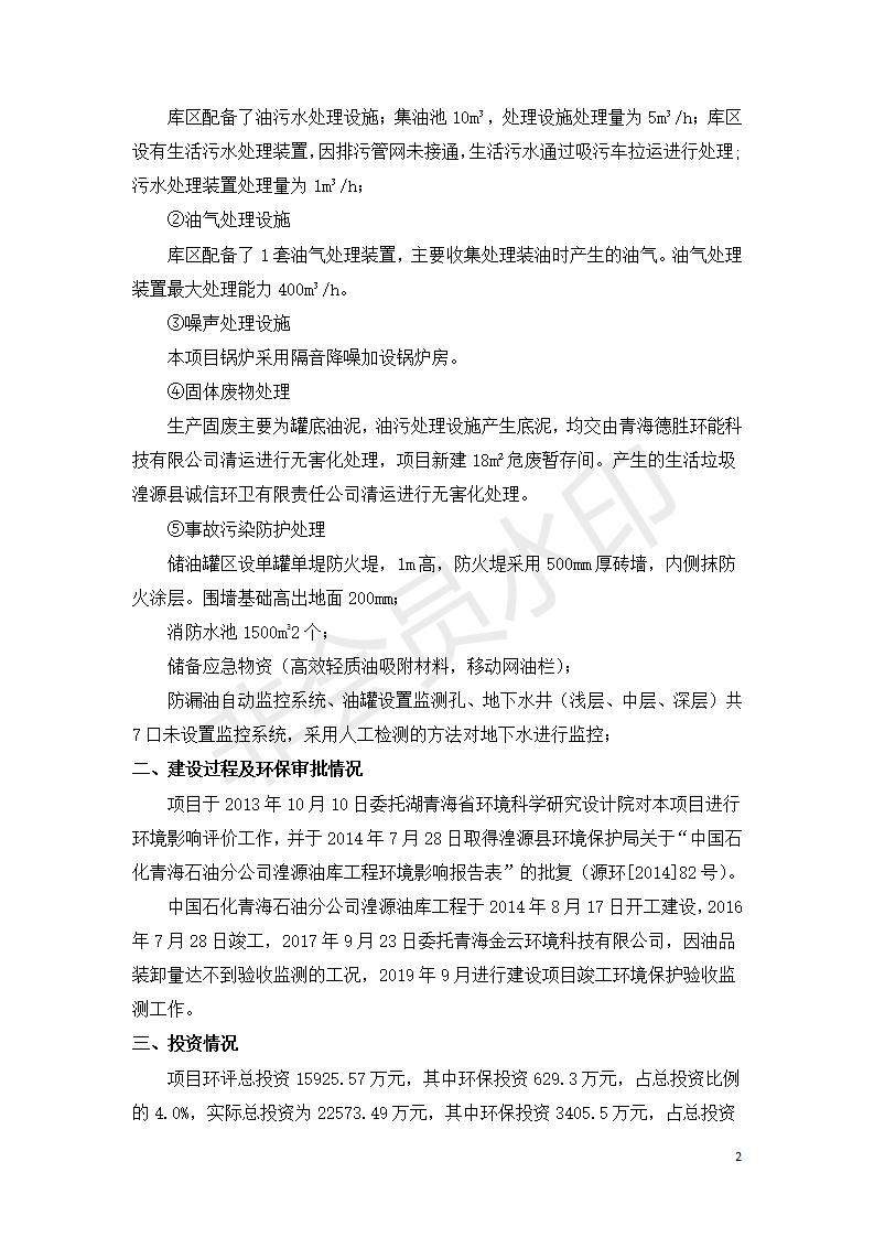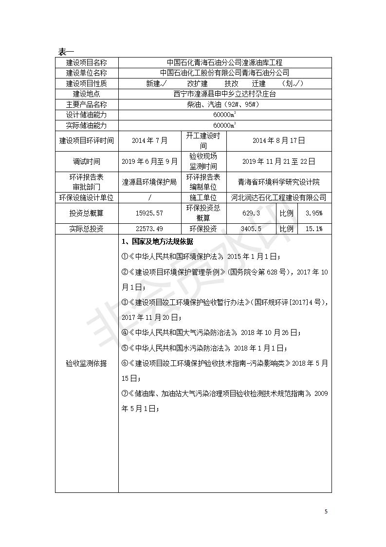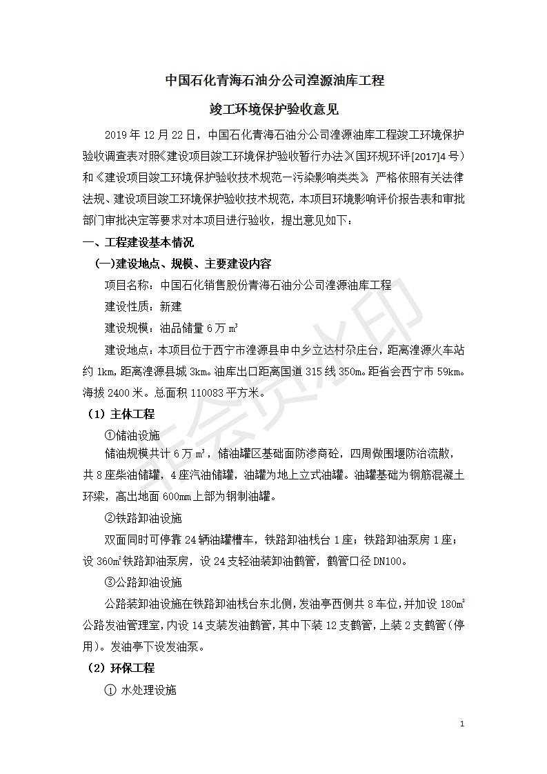 據(jù)中華人民共和國國務(wù)院令第682號《國務(wù)院關(guān)于修改〈建設(shè)項目環(huán)境保護管理條例〉的決定》和《建設(shè)項目竣工環(huán)境保護驗收暫行辦法》(國務(wù)院令682號),中國石化青海石油分公司湟源油庫工程建設(shè)項目(包括竣工環(huán)境保護驗收監(jiān)測報告表和驗收意見)公示如下。 一、項目名稱:中國石化青海石油分公司湟源油庫工程建設(shè)項目 二、地點:西寧市湟源縣申中鄉(xiāng)立達村尕莊臺 三、建設(shè)單位:中國石化銷售股份有限公司青海石油分公司 四、建設(shè)內(nèi)容:油品儲量6萬m3、其他配套設(shè)施。五、聯(lián)系人:董恒棟 六、聯(lián)系電話:18697130811 七、公示時間:二〇二〇年三月十三日至二〇二〇年四月十日 公示期間,對上述公示內(nèi)容如有異議,請以書面形式反饋,個人須署真實姓名,單位須加蓋公章。