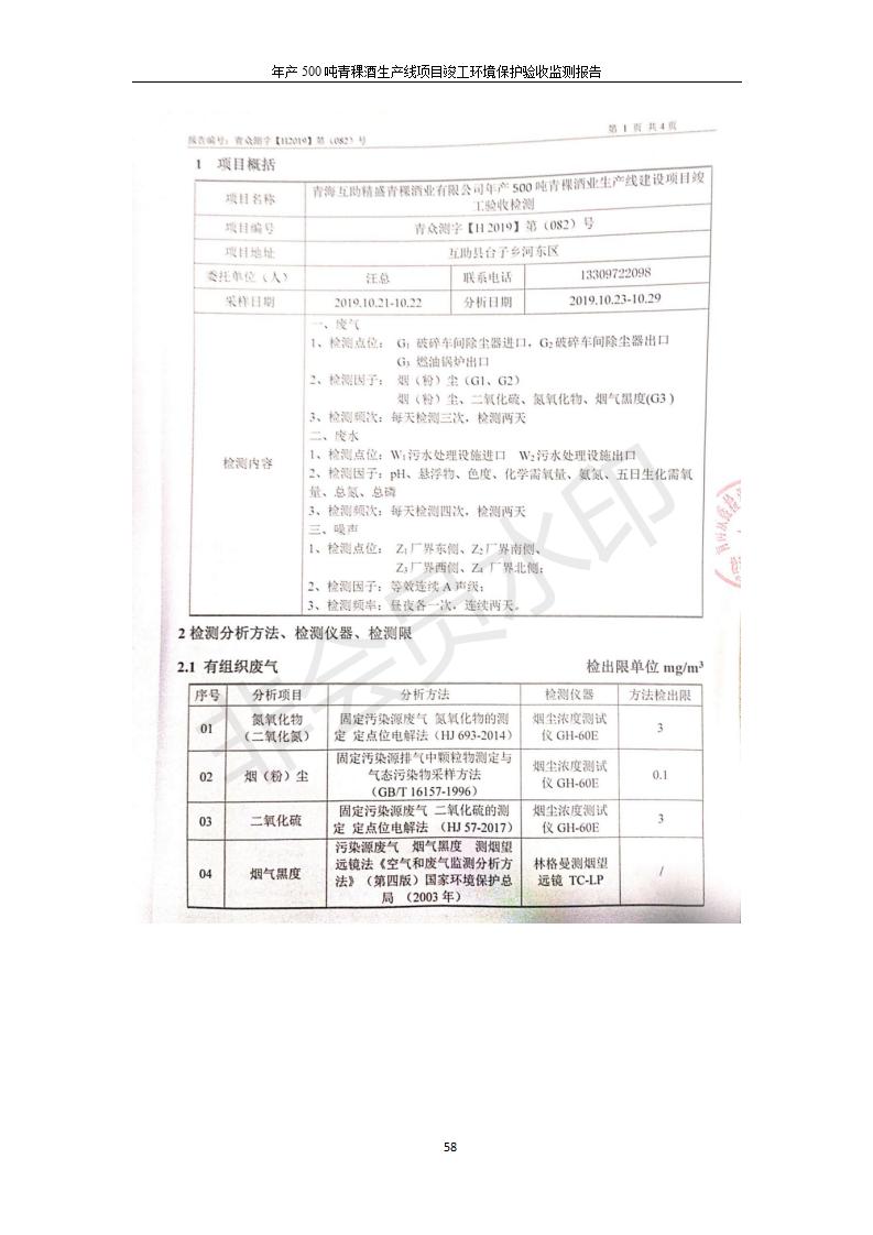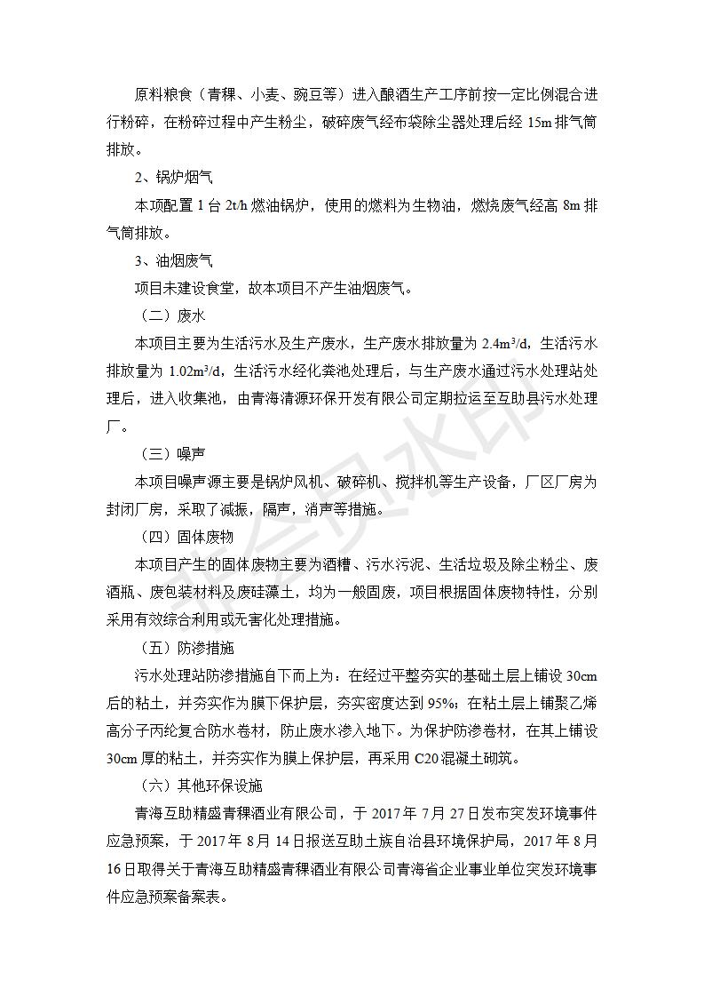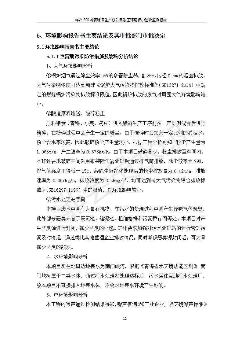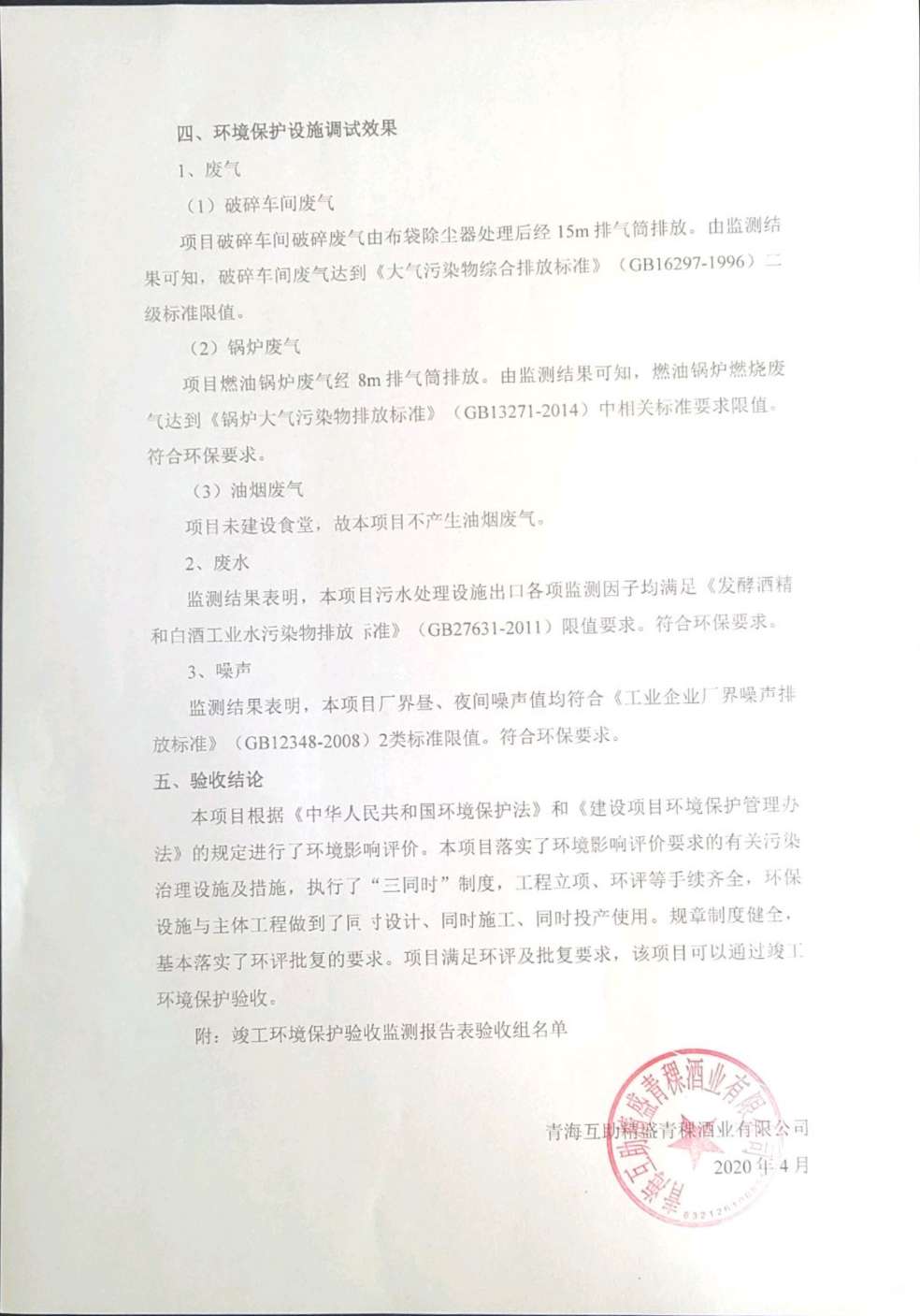 青;ブ⑶囡茦I(yè)有限公司年產(chǎn)500噸青稞酒業(yè)生產(chǎn)線建設(shè)項(xiàng)目竣工環(huán)境保護(hù)驗(yàn)收監(jiān)測報(bào)告表公示發(fā)布日期:(2020-4-27) 點(diǎn)擊次數(shù):2444 |