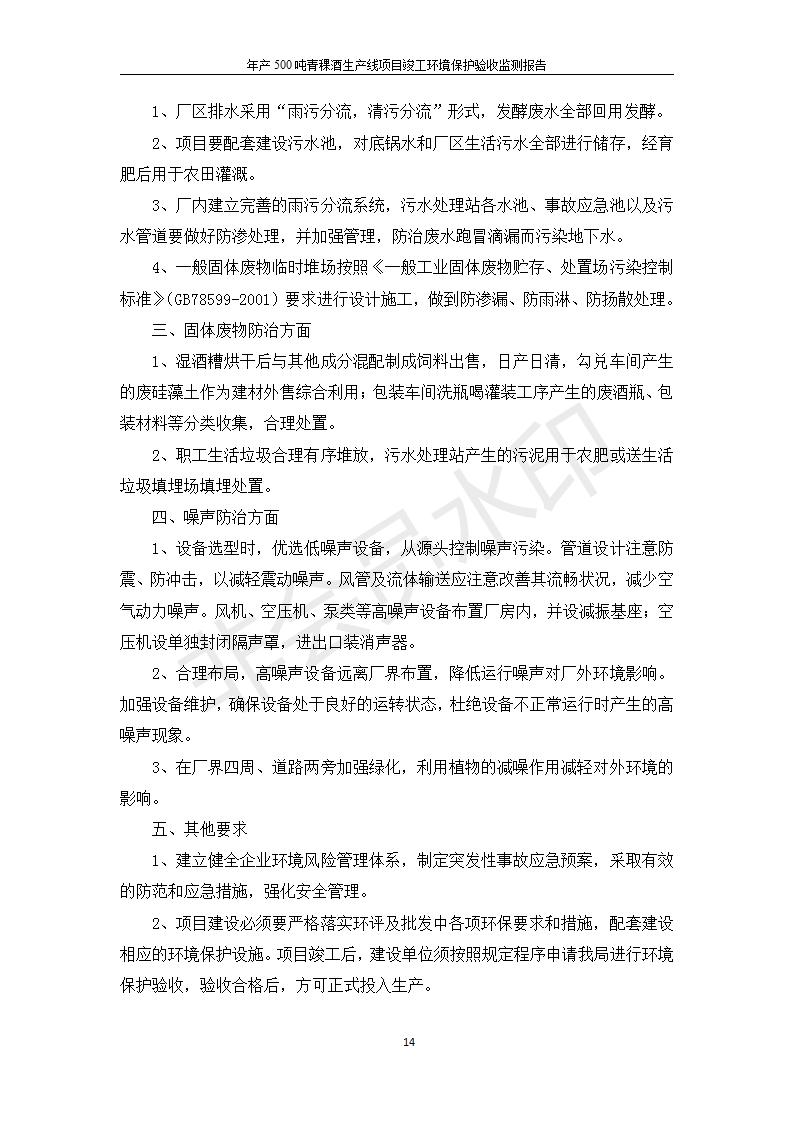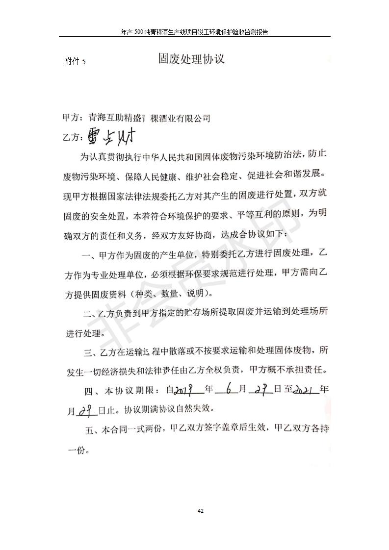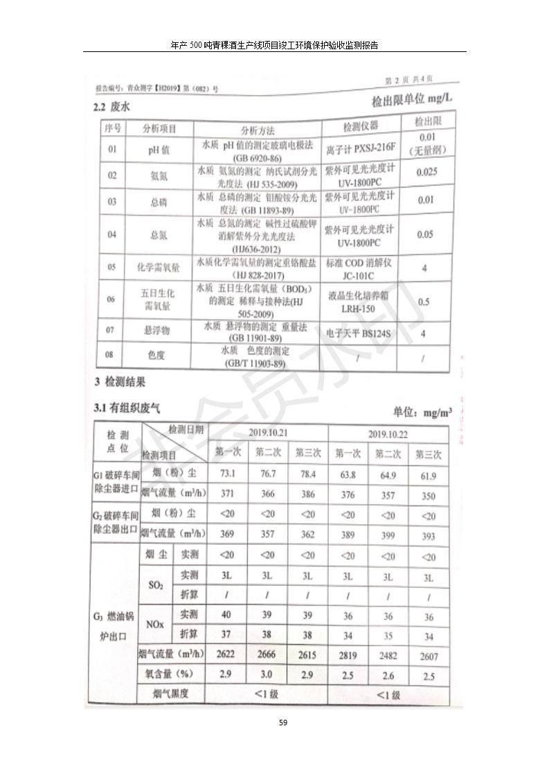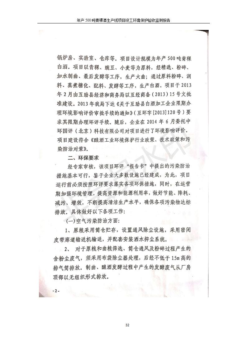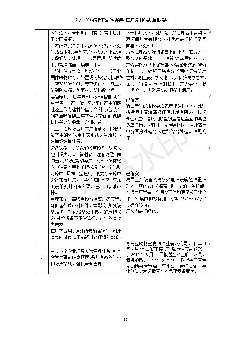 青;ブ⑶囡茦I(yè)有限公司年產(chǎn)500噸青稞酒業(yè)生產(chǎn)線建設(shè)項(xiàng)目竣工環(huán)境保護(hù)驗(yàn)收監(jiān)測報(bào)告表公示發(fā)布日期:(2020-4-27) 點(diǎn)擊次數(shù):2444 |