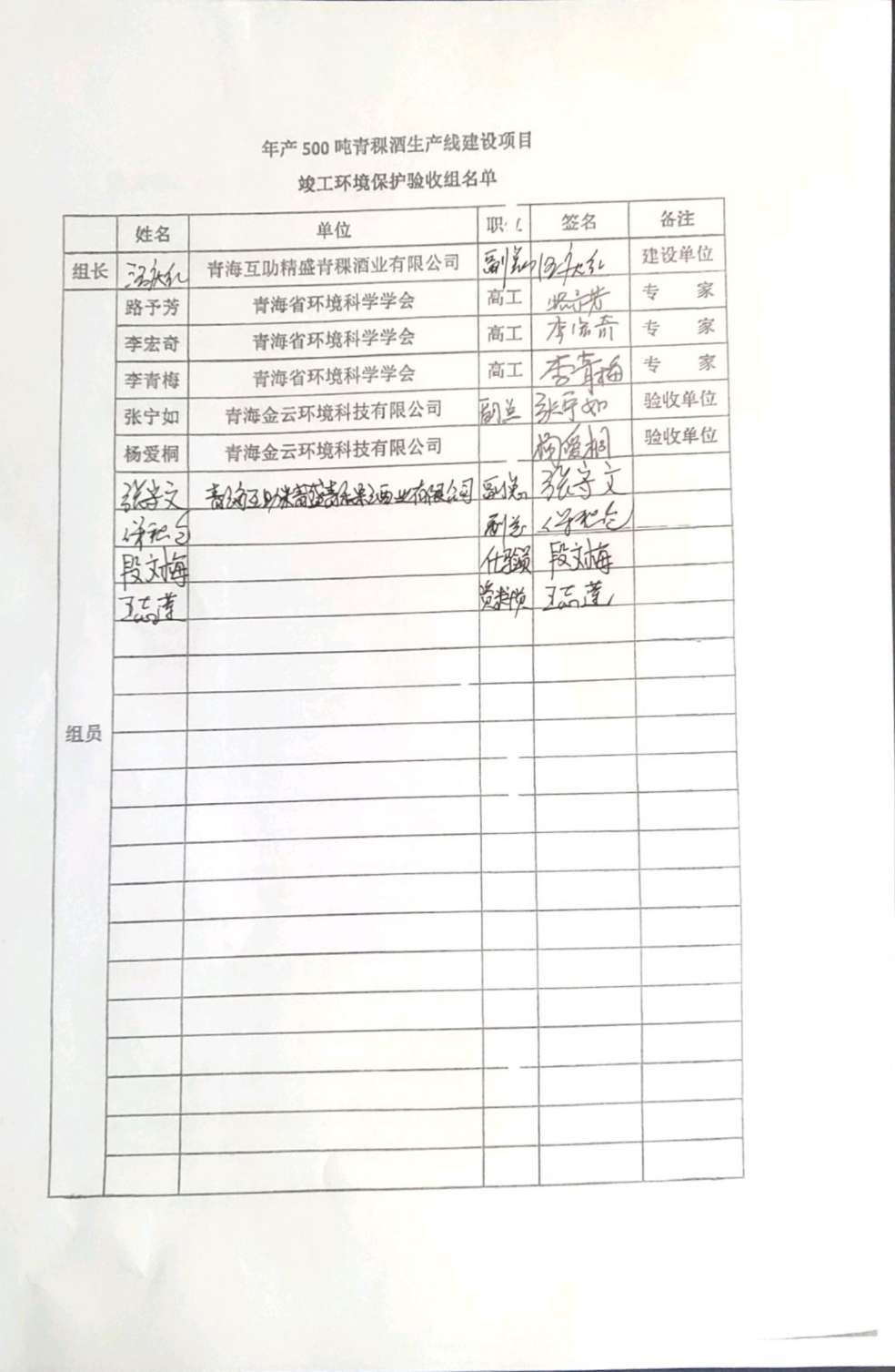 根據(jù)中華人民共和國國務(wù)院令第682號《國務(wù)院關(guān)于修改〈建設(shè)項(xiàng)目環(huán)境保護(hù)管理?xiàng)l例〉的決定》和《建設(shè)項(xiàng)目竣工環(huán)境保護(hù)驗(yàn)收暫行辦法》(國務(wù)院令682號),綜合檢測實(shí)驗(yàn)室建設(shè)項(xiàng)目(包括竣工環(huán)境保護(hù)驗(yàn)收監(jiān)測報(bào)告表和驗(yàn)收意見)公示如下。 一、項(xiàng)目名稱:青;ブ⑶囡茦I(yè)有限公司年產(chǎn)500噸青稞酒業(yè)生產(chǎn)線建設(shè)項(xiàng)目 二、地點(diǎn):青海省海東市互助土族自治縣臺子鄉(xiāng)河?xùn)|村198號
