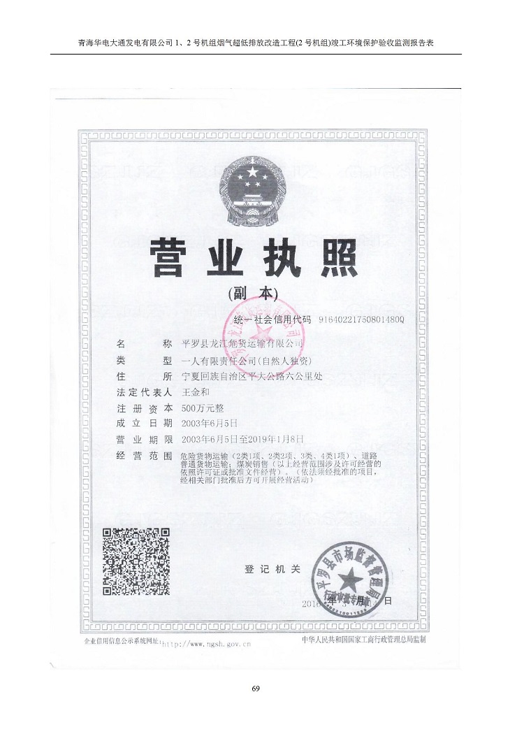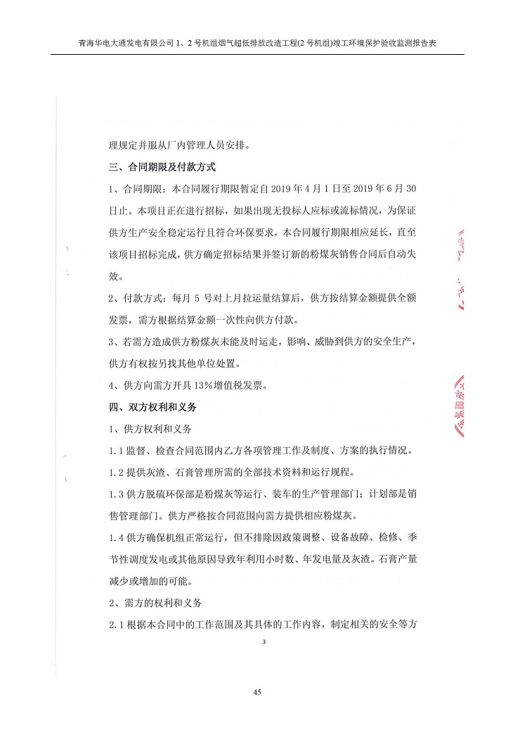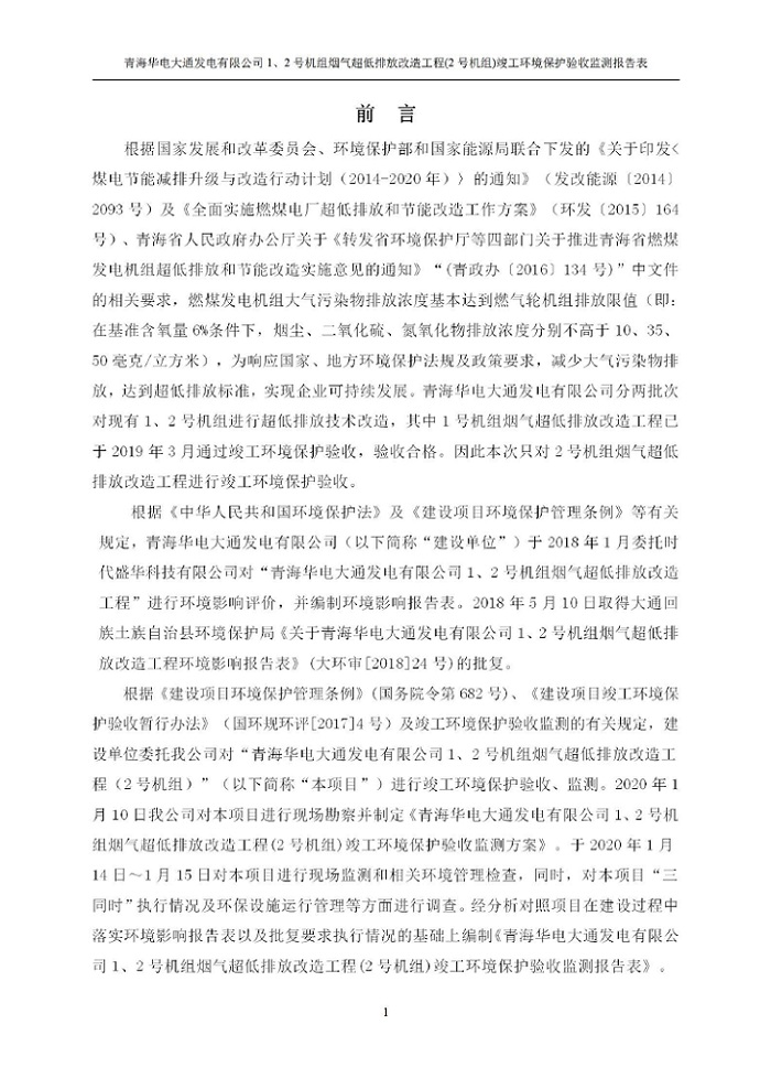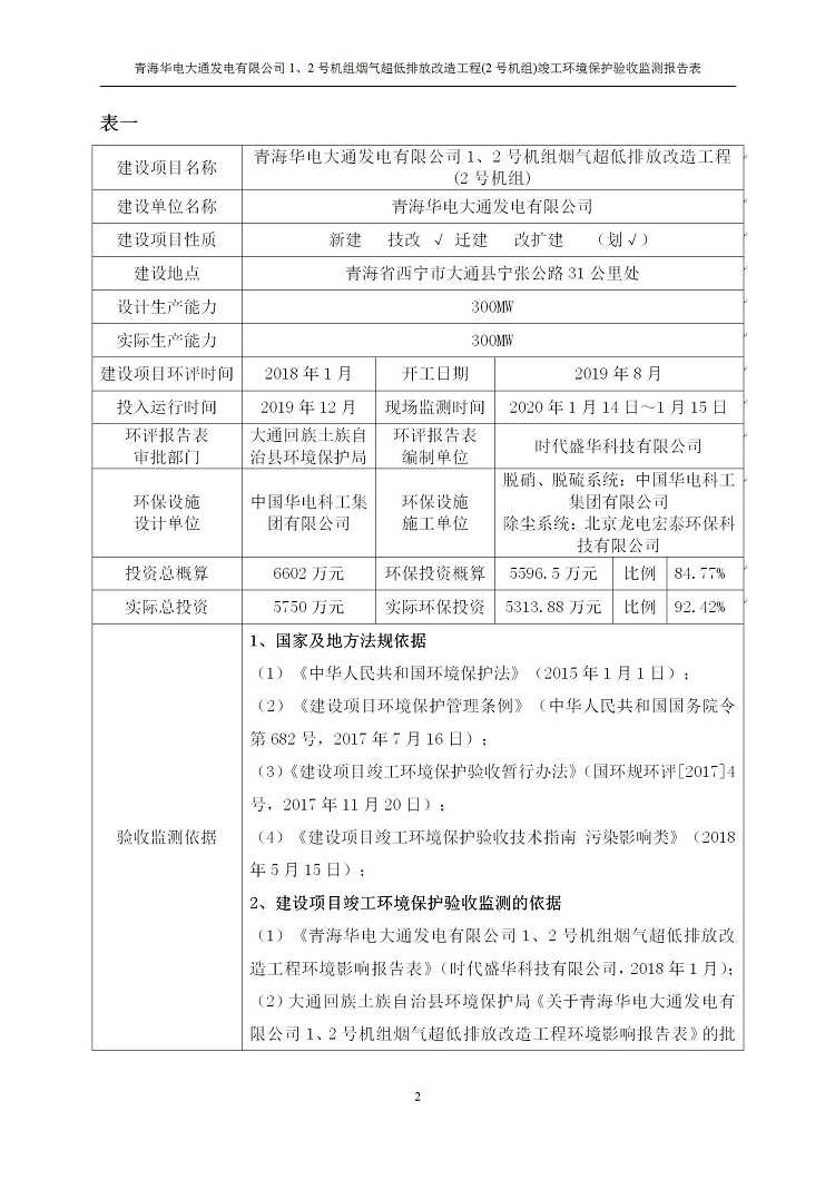 青海華電大通發(fā)電有限公司1、2號機(jī)組煙氣超低排放改造工程(2號機(jī)組) 竣工環(huán)境保護(hù)驗收監(jiān)測報告表公示發(fā)布日期:(2020-4-29) 點(diǎn)擊次數(shù):2444 |